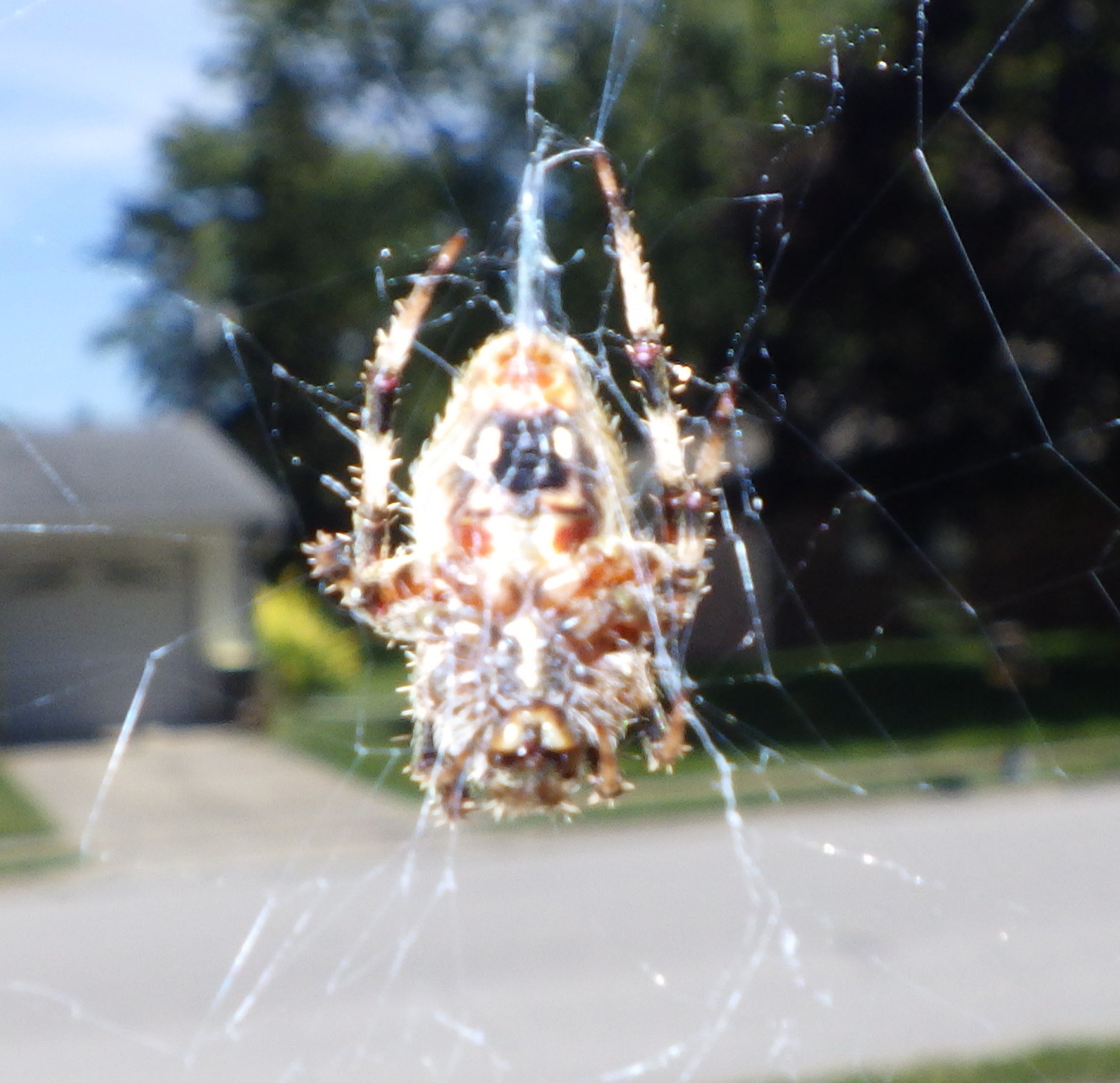 The water-soaked web shown above was produced by this orb spider. We named this orb spider 'Roy' after 'Roy Orbison' of 'Pretty Woman' fame.
