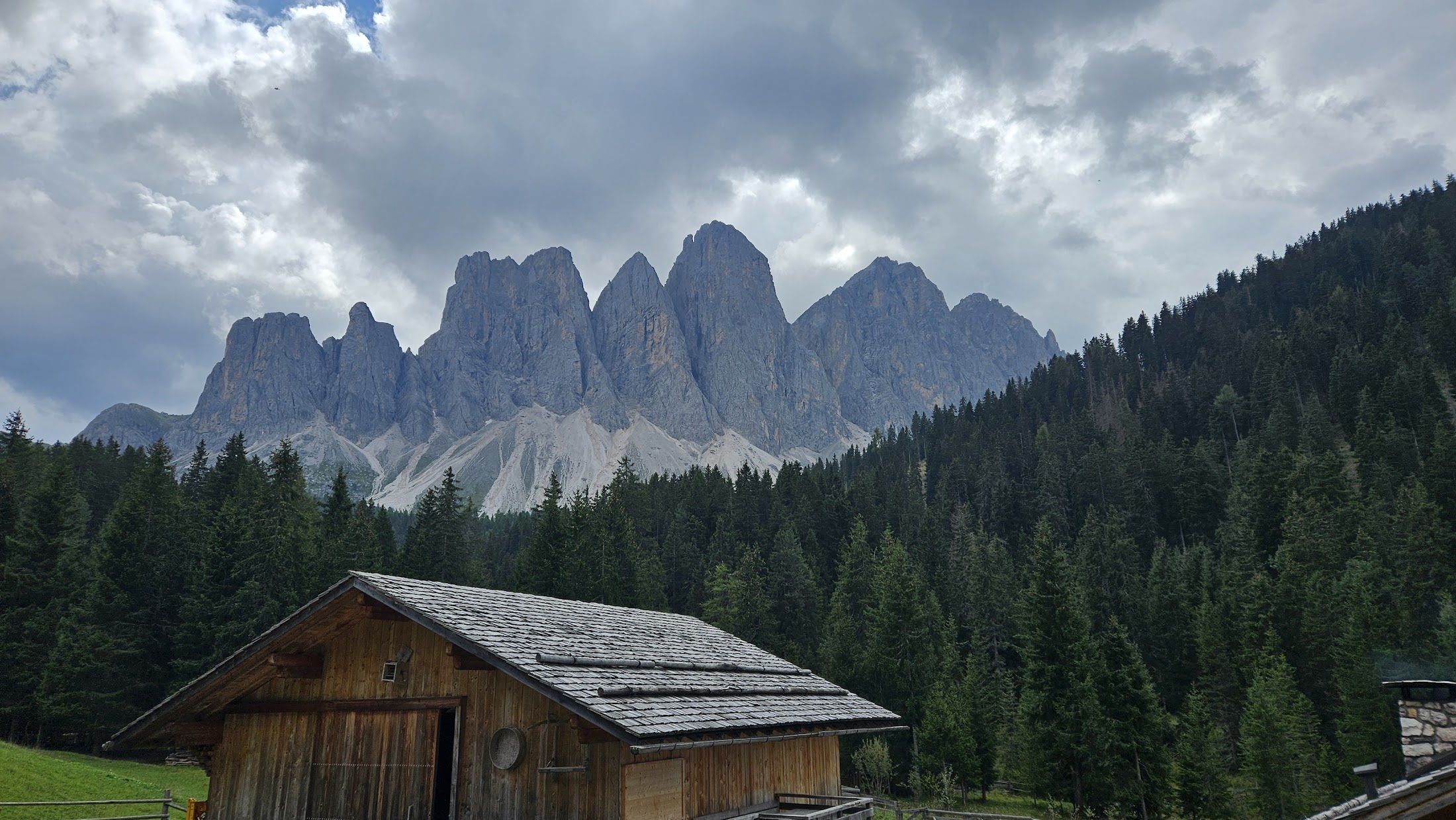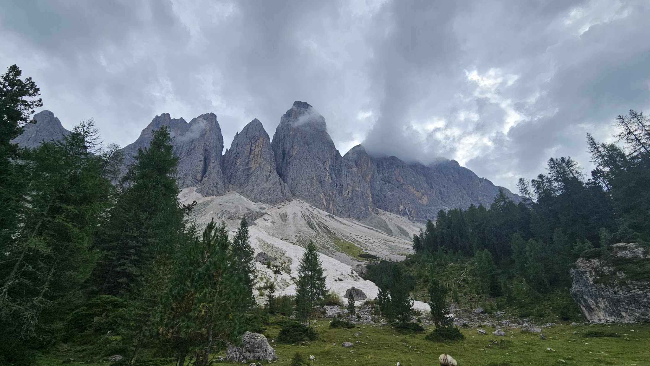While we were sitting in the mountain lodge, usually for this time of year and the Dolomites, there was a sudden change in the weather. In just a few minutes, the weather turned from a sunny day into a rainy storm that threatened to get us completely wet for the second day in a row. Since we already knew that Maja's rain jacket was not working, we quickly organized ourselves as we did on the first day - Marko and Ivan hurried to the car, and Maja and I followed trek slowly at her pace.