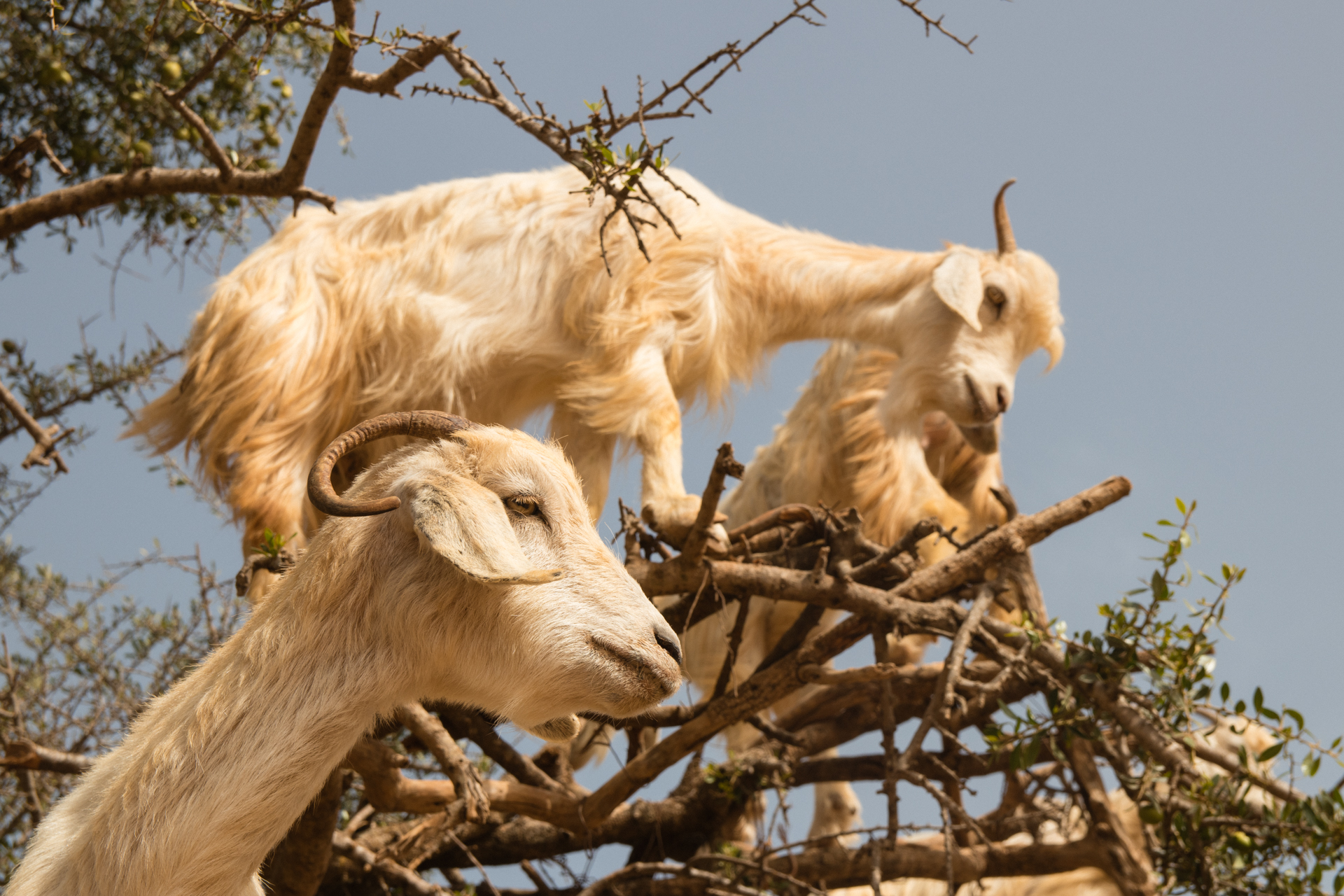 The goats are fond of the fruits produced by the Argan tree and as equilibrists they climb to eat them.