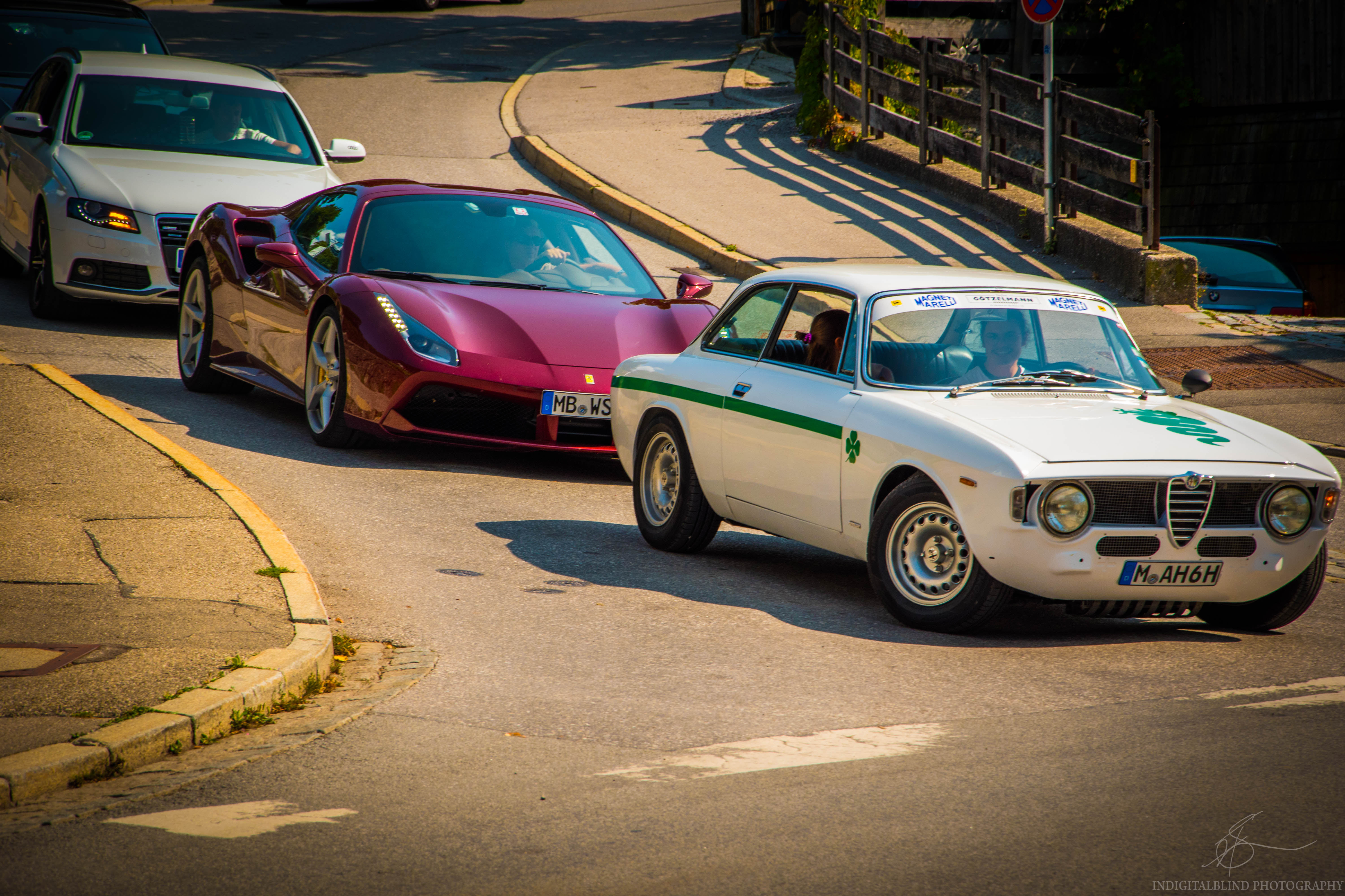 Shot this of some cool cars I spotted on the streets of Germany. I like how the guy in the white car smiles at me :D