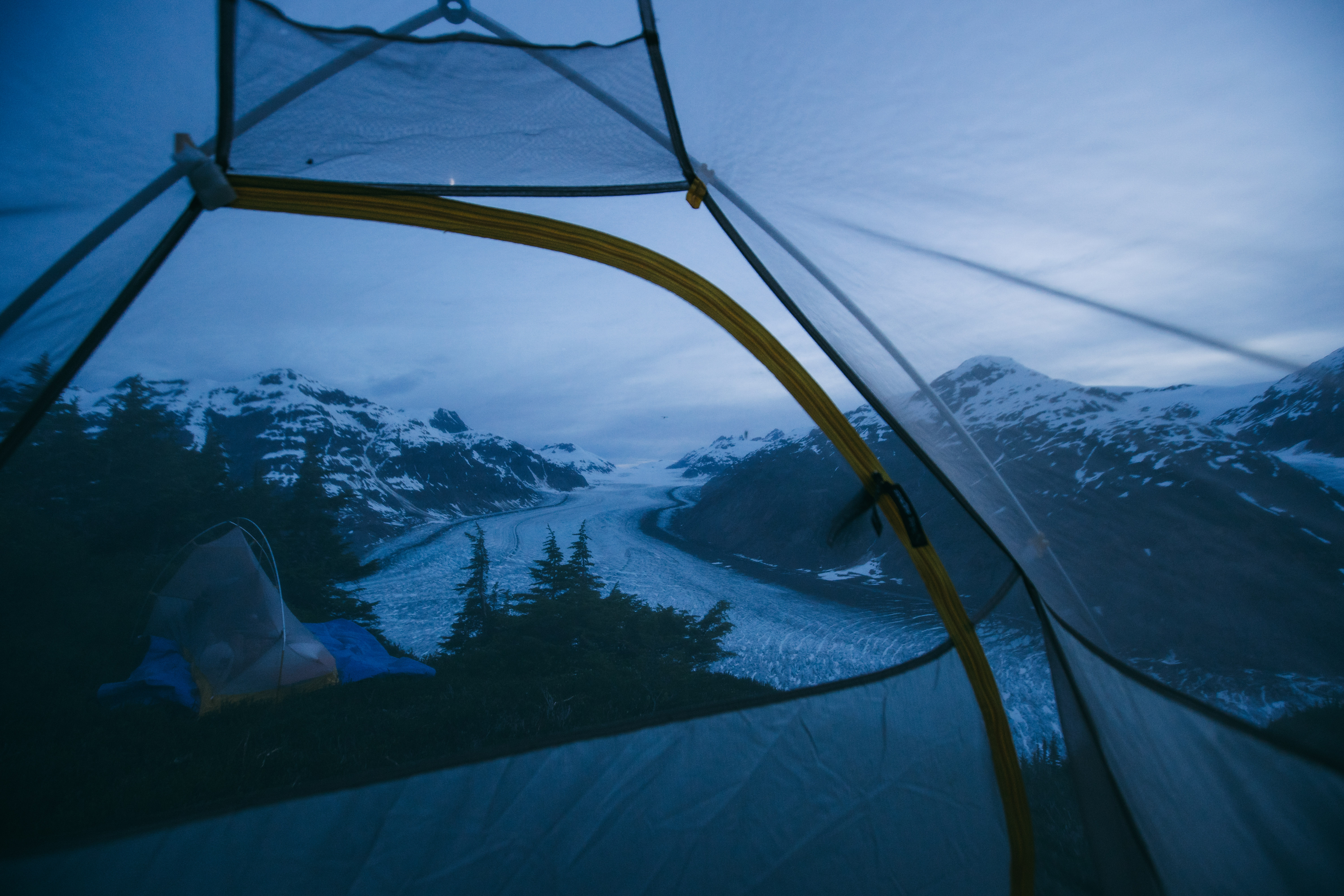 This isn't what made Hyder special to me though. this place was absolutely beautiful and gave me some of my fondest trip memories. We drove my civic out a 22-mile dirt road alongside a mountain. We slept on a mountain face, overlooking a massive glacier, and were eaten alive by mosquitoes. We arose early to witness an incredible sunrise and a beautifully calm morning on the water in the bay. I got to take photos of one of the best reflections I've ever seen. We did so many cool things... but coolest of all, and by far my favorite moment: I proposed and she said yes.