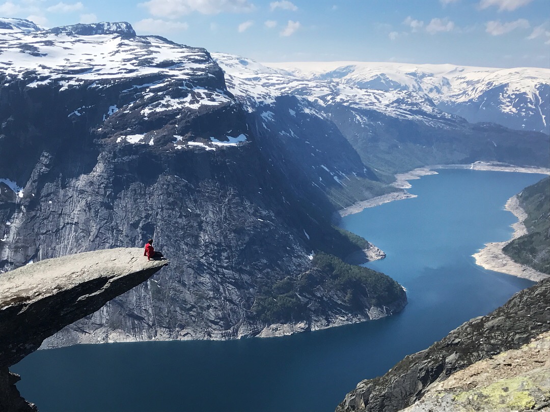 Trolltungadream-travel (31)in #photography • 8 years ago After a 4 hour hike over 9 miles long mostly in the snow I finally made it to the famous Trolltunga. What an incredible view and place to sit that I will never forget for the rest of my life. #travel #hike #photo