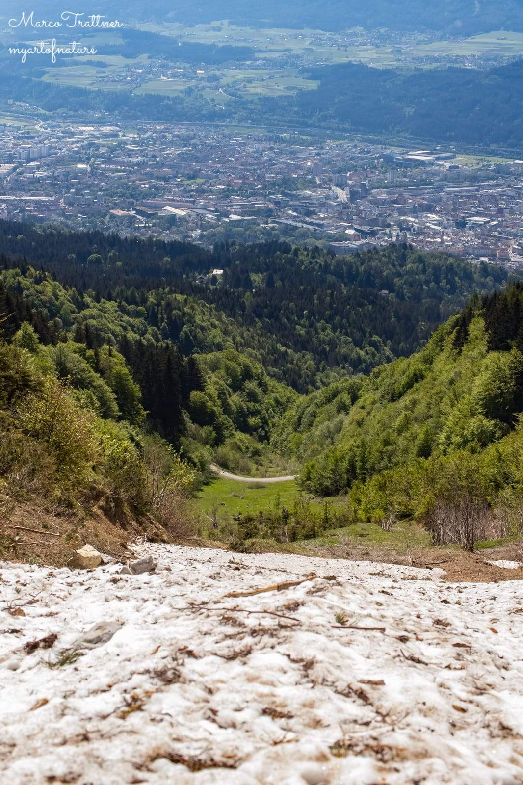 Durch mehrere solcher Lawinenschluchten mit guten 35° bis 45° Steigung sind wir den Berg hinauf.
