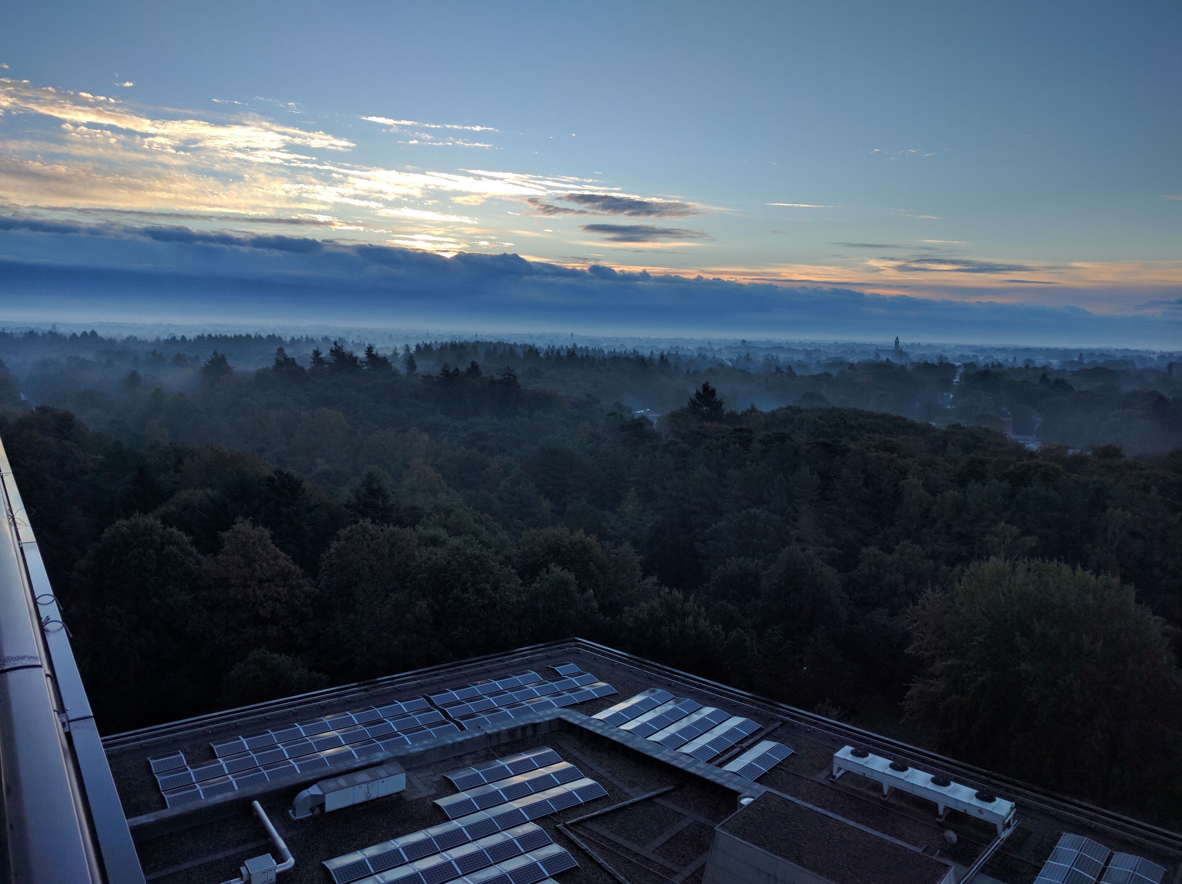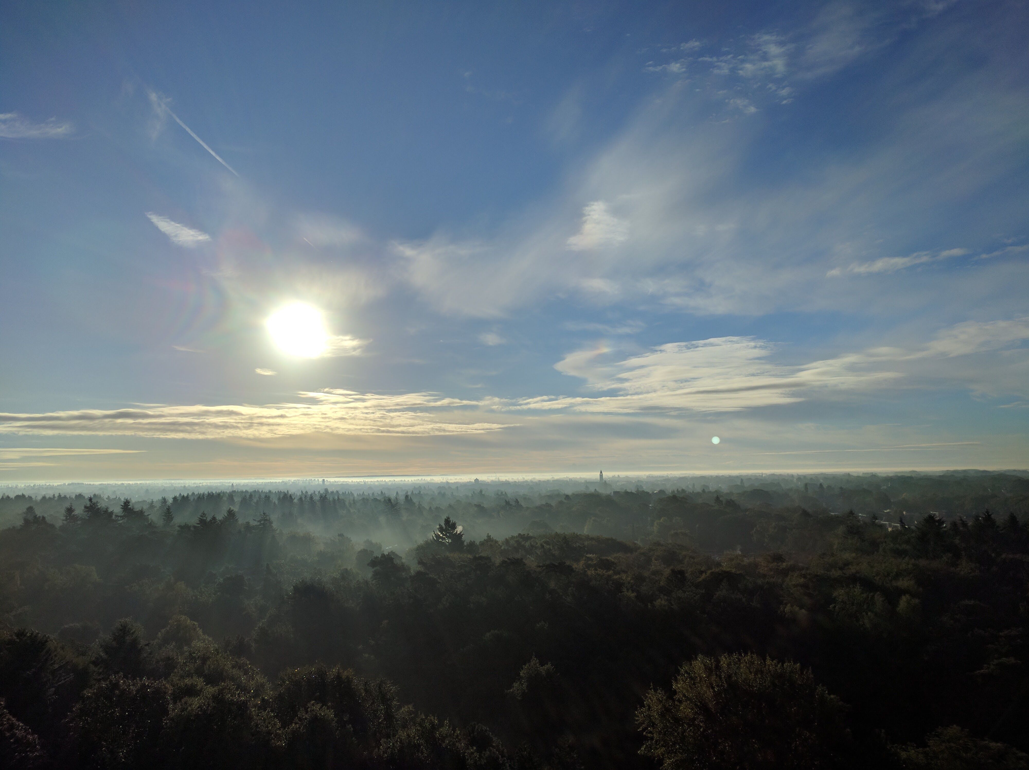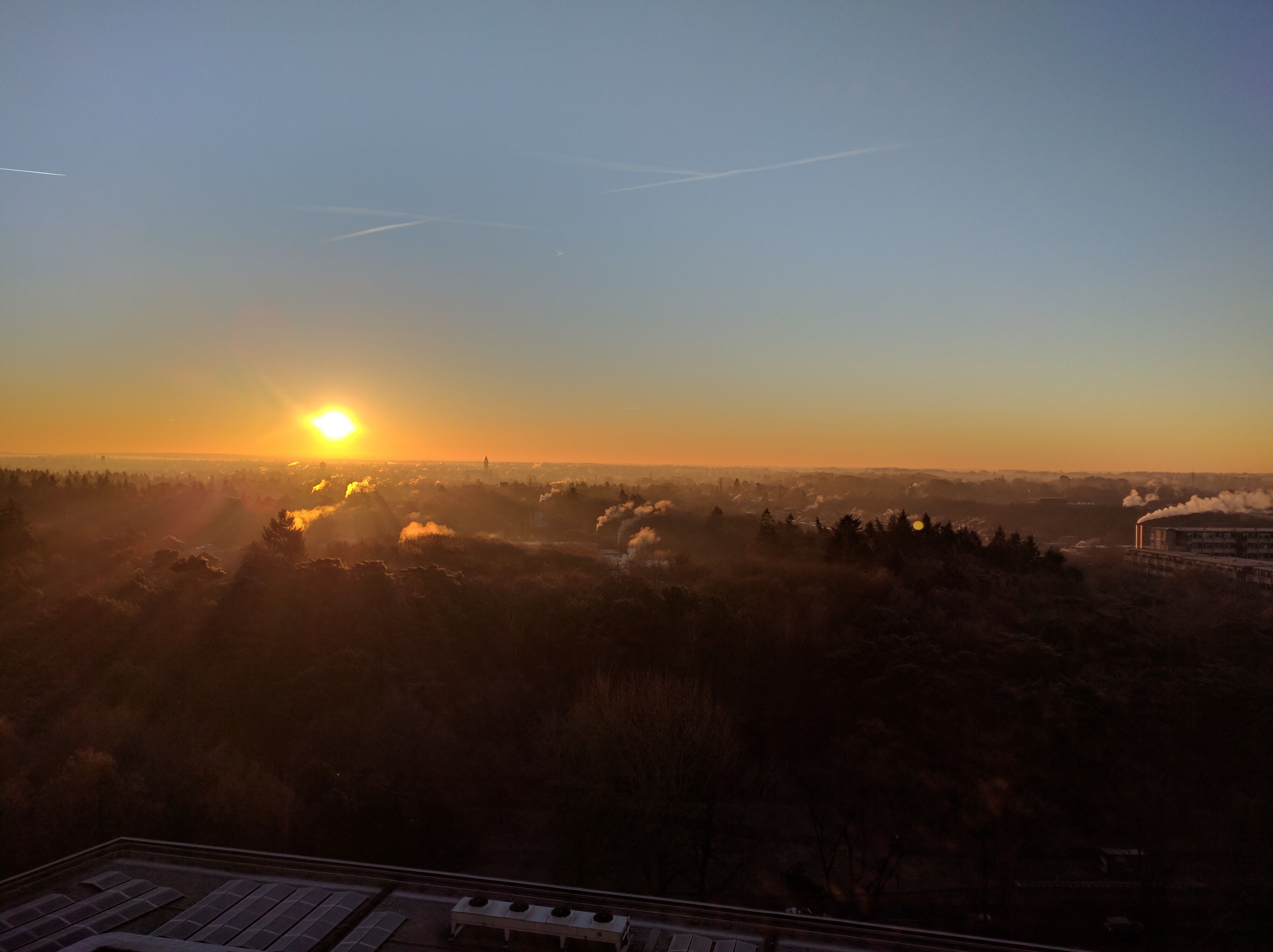 So I grew up in Breda, a city in the south of the Netherlands. The chimneys and the steam you see coming out of them on the horizon are from the powerplant in at Geertruidenberg 52 km away. I used to look at them when I was walking the dog or when I came home cycling from school. So it feels good that i can still see them every now and then, if the weather allows it. The picture was taken through a binocular. If it is clear enough outside you can see them with the naked eye.