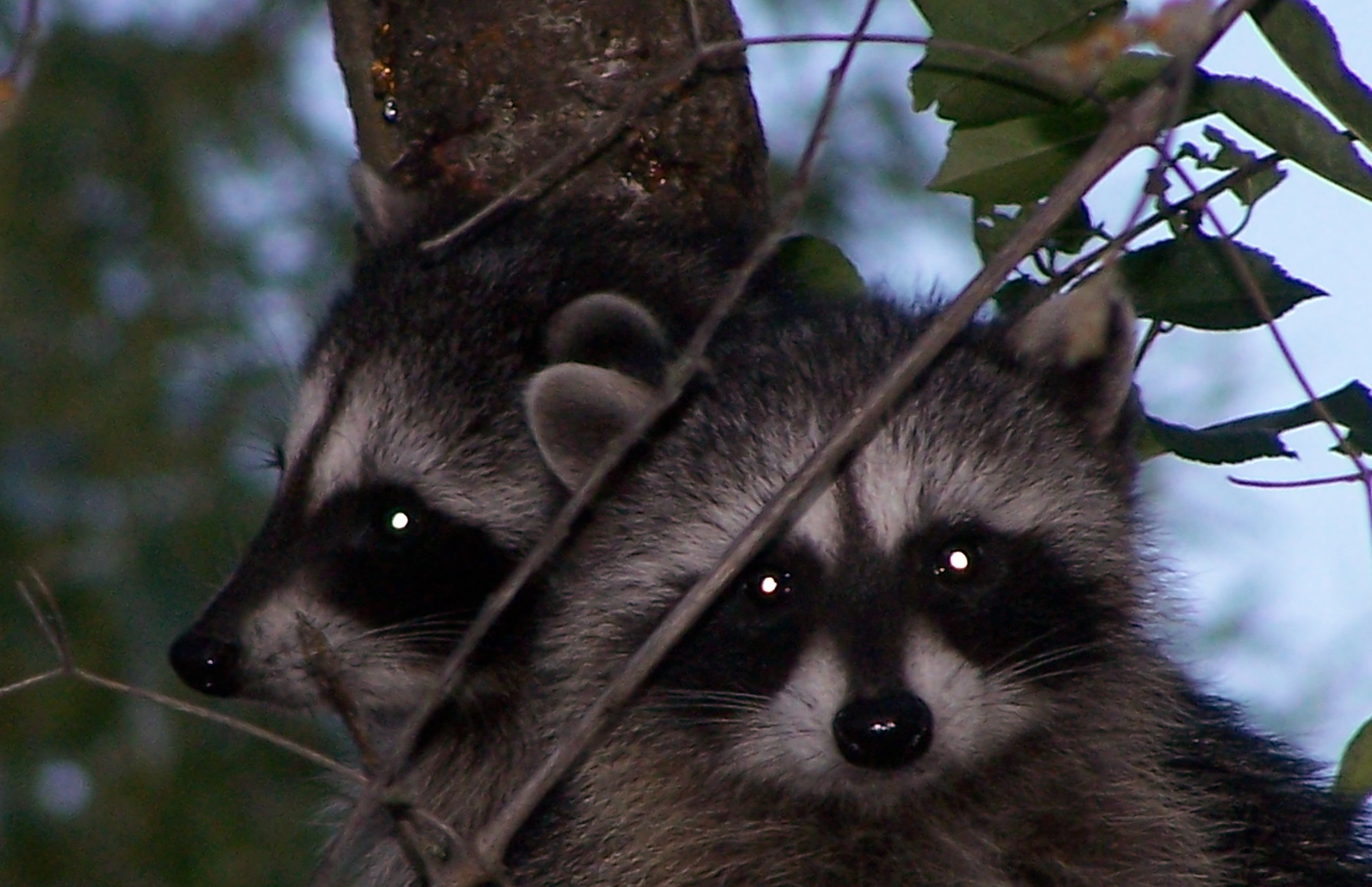 Oh... no... wait... it's just two sibling Raccoons taking a moment to be adorable and pose for a picture.