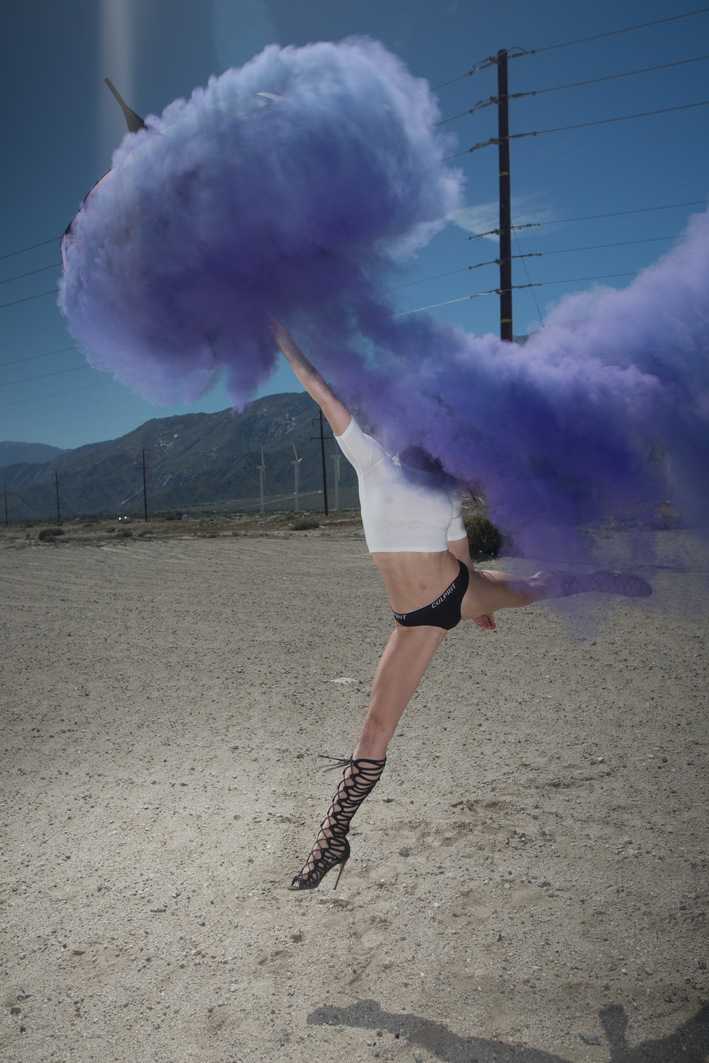 The two mood boards above were for a photoshoot we did in the desert at an art installation called desert X, and some other shots we did with colored smoke and umbrellas. This was done for my own underwear company, Culprit Underwear, which is launching in January. I will share the photos from that shoot in an upcoming post. You can tell we found our subject, covering most of her face with smoke, then we used the inspiration from those jumping umbrella shots. You know what? Fuck it, I'll put one or two here so you can see how it turned out.