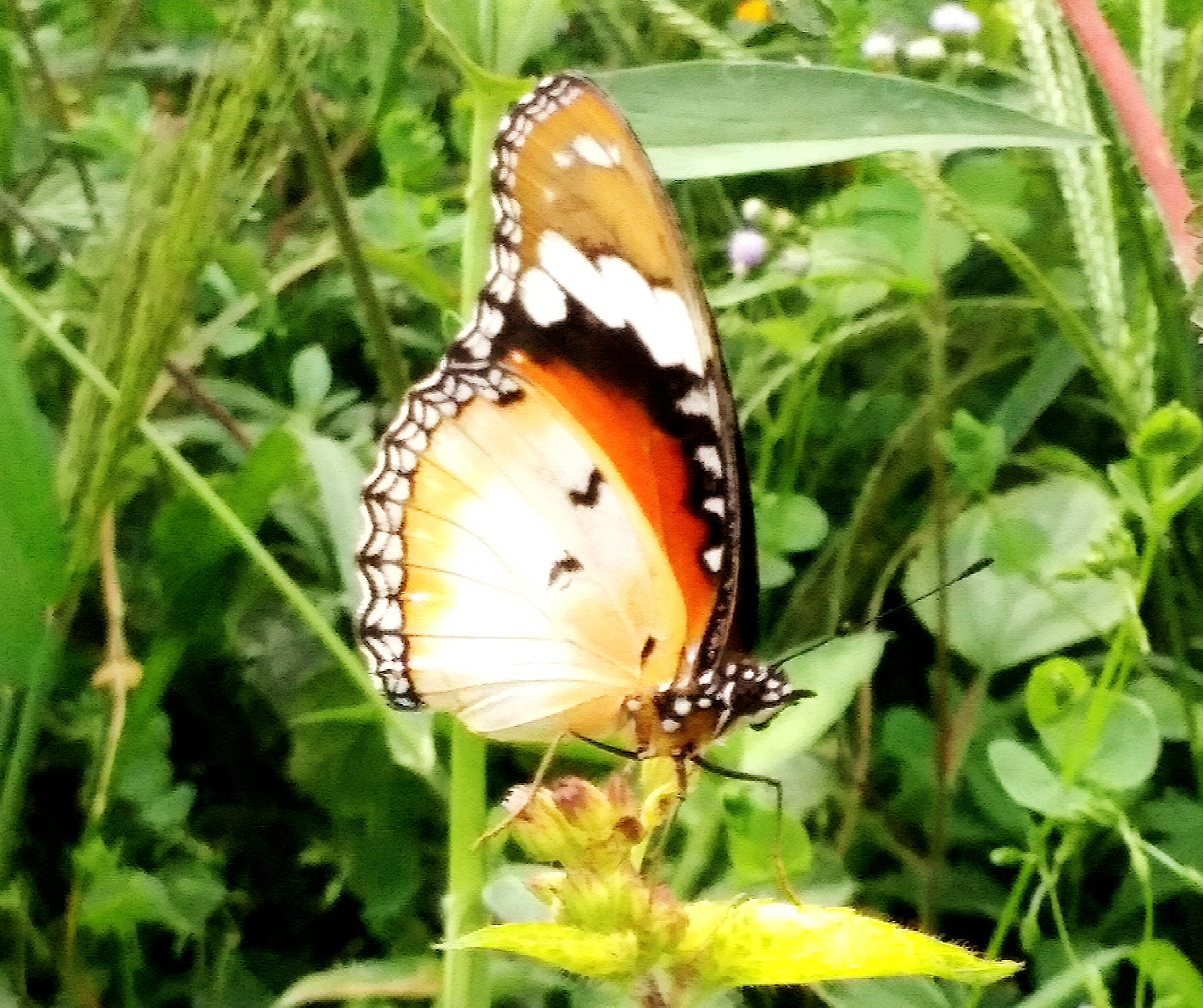 Today I found an animal that is quite beautiful and very useful for the lives of other creatures on the surface of this earth. I found this interesting butterfly on a paddy field which was left overgrown with grass because the harvest period had just lasted.