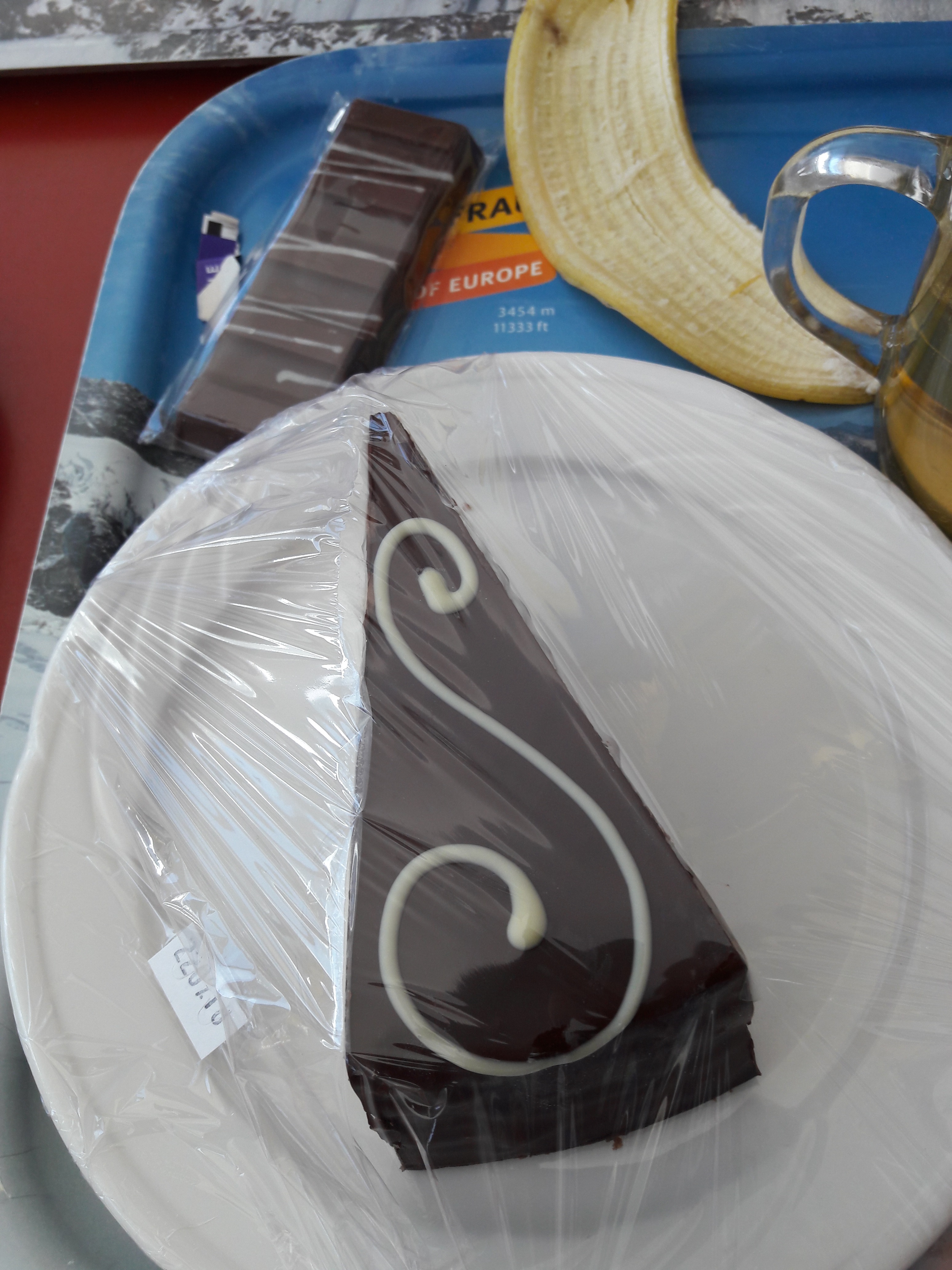 Normally, I only talk to my husband during lunch but we got seated with Indians who were also very very friendly and before we knew it, we were exchanging jokes with their group. Apparently, the place is very famous for them. In between chatting with them, I struggled finishing my plate, it was just too much so I let it go,besides, I need some space for coffee and dessert cause what if it's too cold up there? I need to borrow some energy from sugar and I wasn't sure our organic sugarless energy bars can provide me that so I gave in to the chocolate passion fruit cake that was calling me while I was waiting for my turn to pay. The tray says it's 3, 454 m high in the resto.