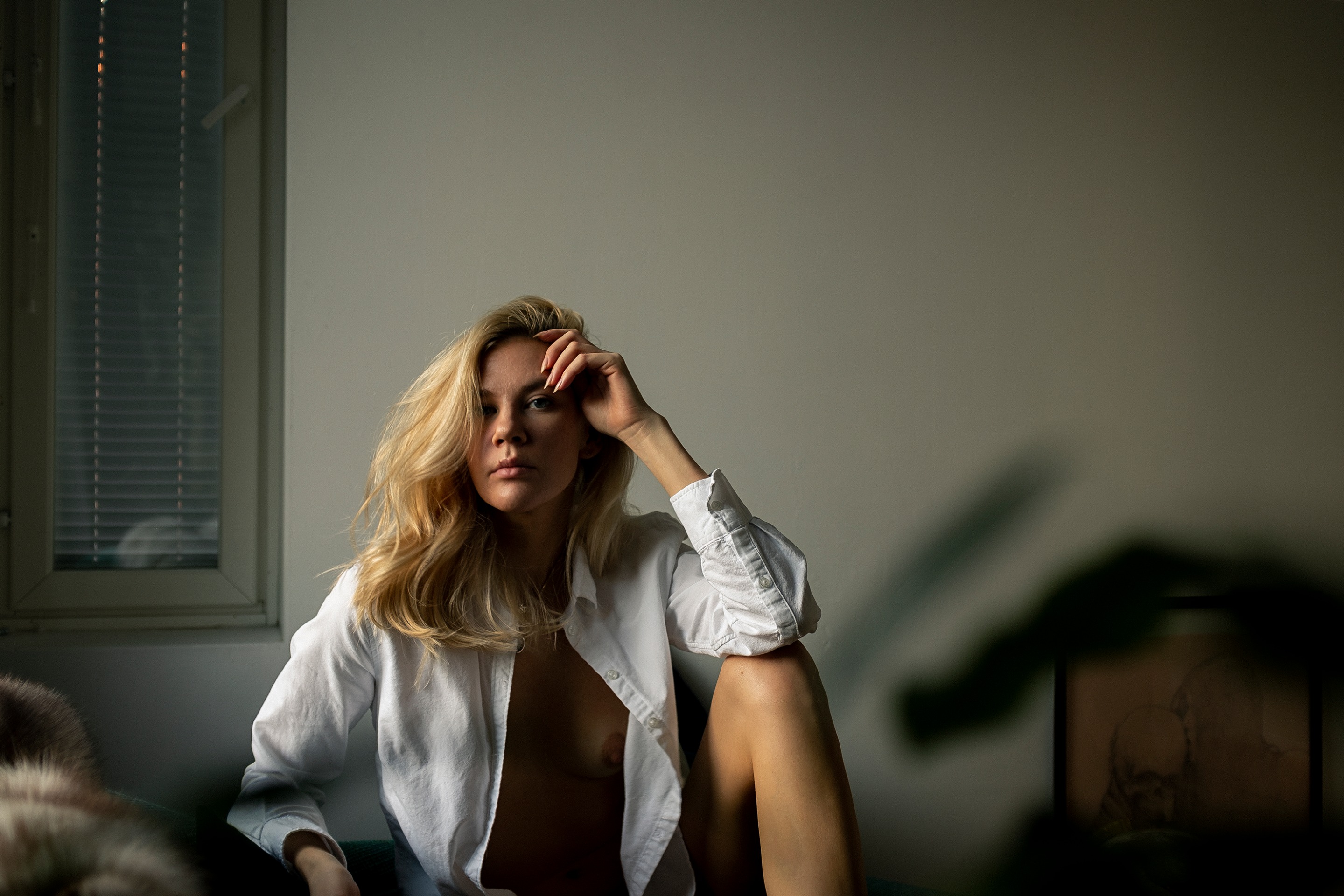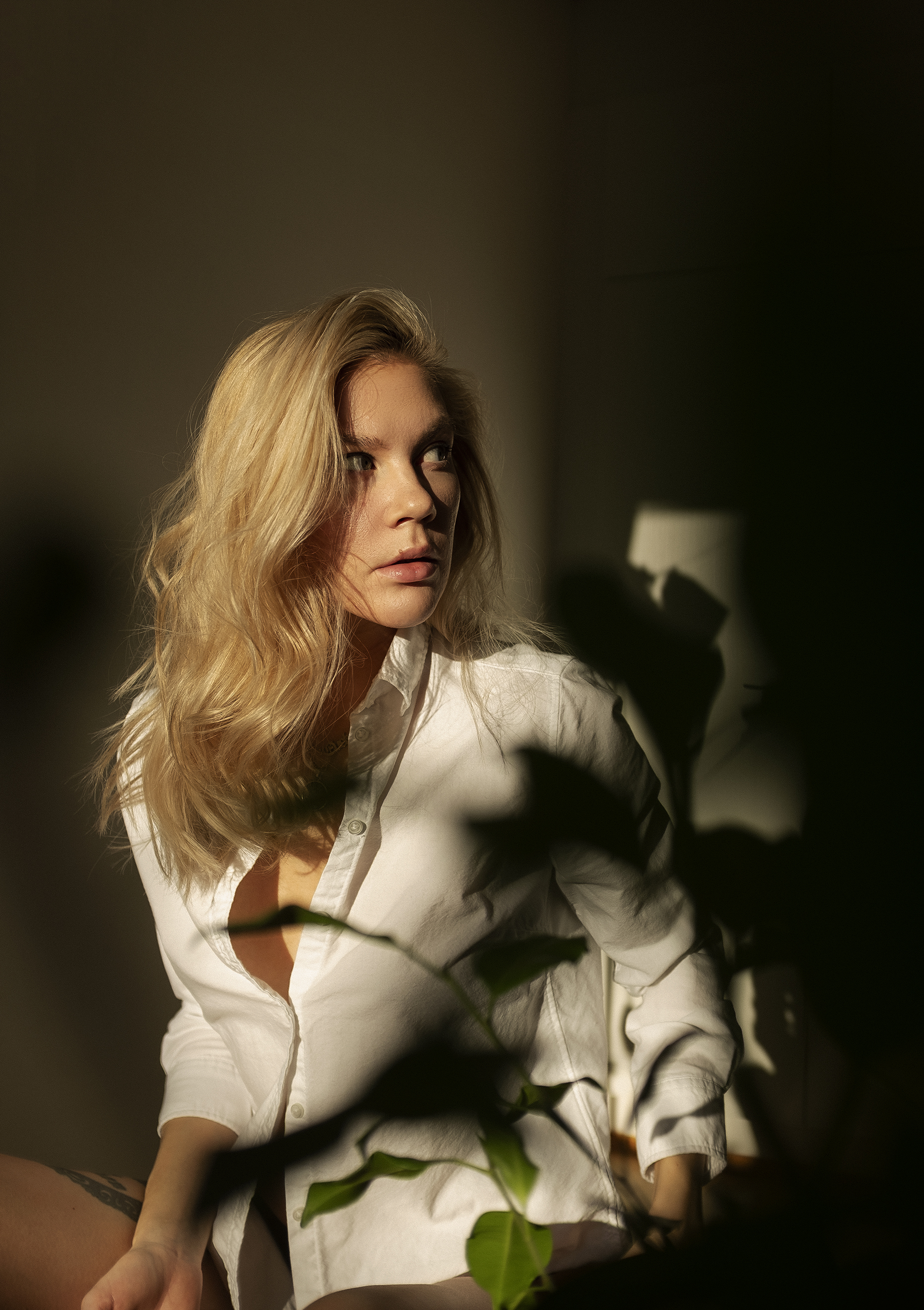 I am really feeling these leaves that are unfocused in front of the camera, I think having that layer of blur adds a lot of depth and interest to the image. Usually people blur out just the background of a portrait but I think having another dimension to the image makes it even better.