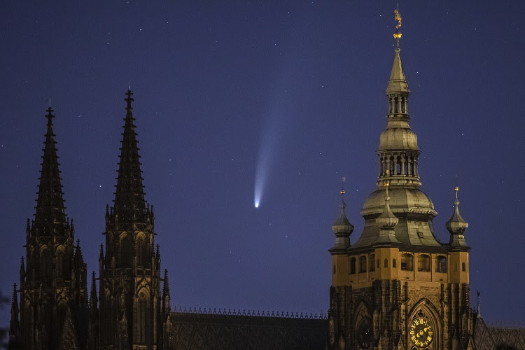 Stunning Pic of Comet NEOWISEfabtheo (43)in #photography • 6 years ago The Comet NEOWISE, or C/2020 F3, is seen above Prague Castle and St Vitus Cathedral, in Prague, Czech Republic, 13 July 2020. The comet passed closest to the Sun on 3 July and its closest approach to Earth will occur on 23 July.