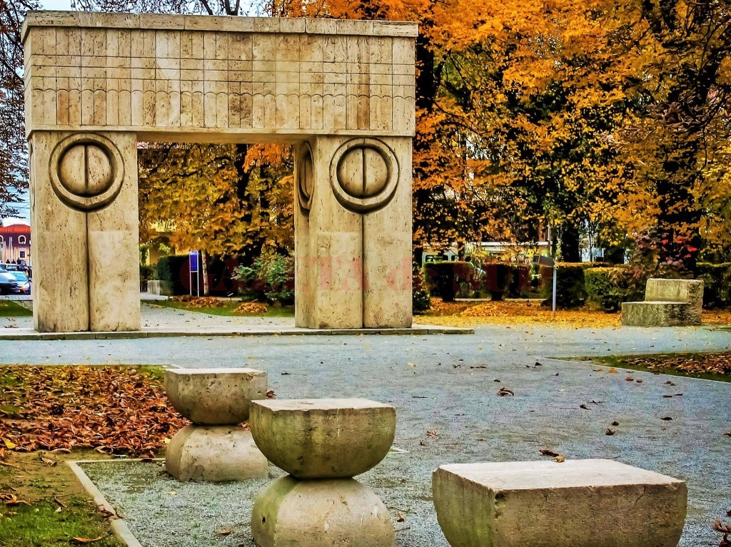 Well,here we are,at my hometown,Targu-Jiu.I think you might have heard about the famous sculptor Brancusi because he is known worldwide and he has exhibits in Paris and US.In Targu-Jiu you can see the monuments that couldn't be moved and are positioned in line on Heroes Boulevard:''The Endless Column'',''The Kissing Gate'' and ''The Table of Silence''.