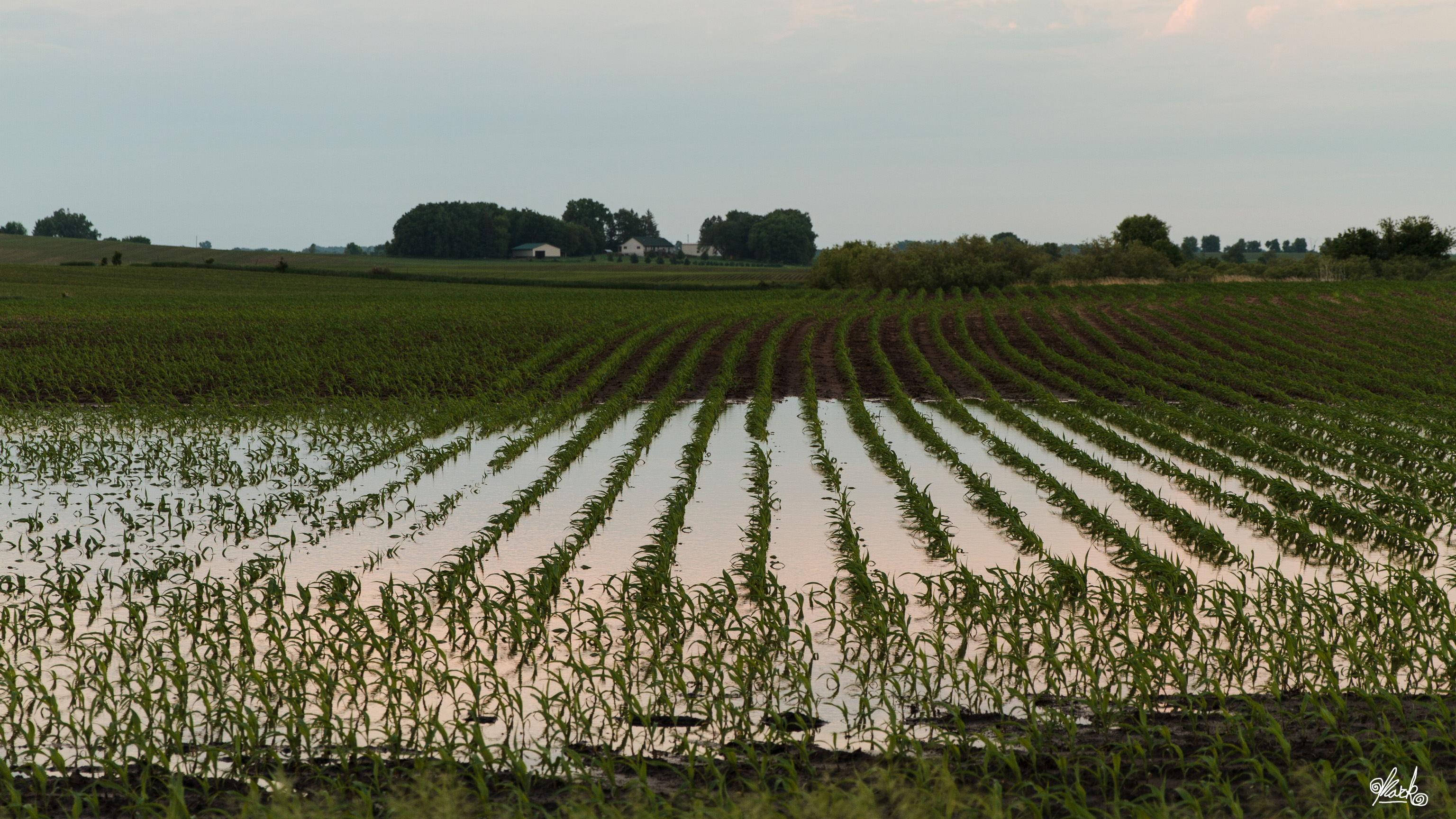 The heavy rainfall left many fields in states similar to this one. The forecast calls for sunshine and drier days, though, and these puddles were probably dry by morning.