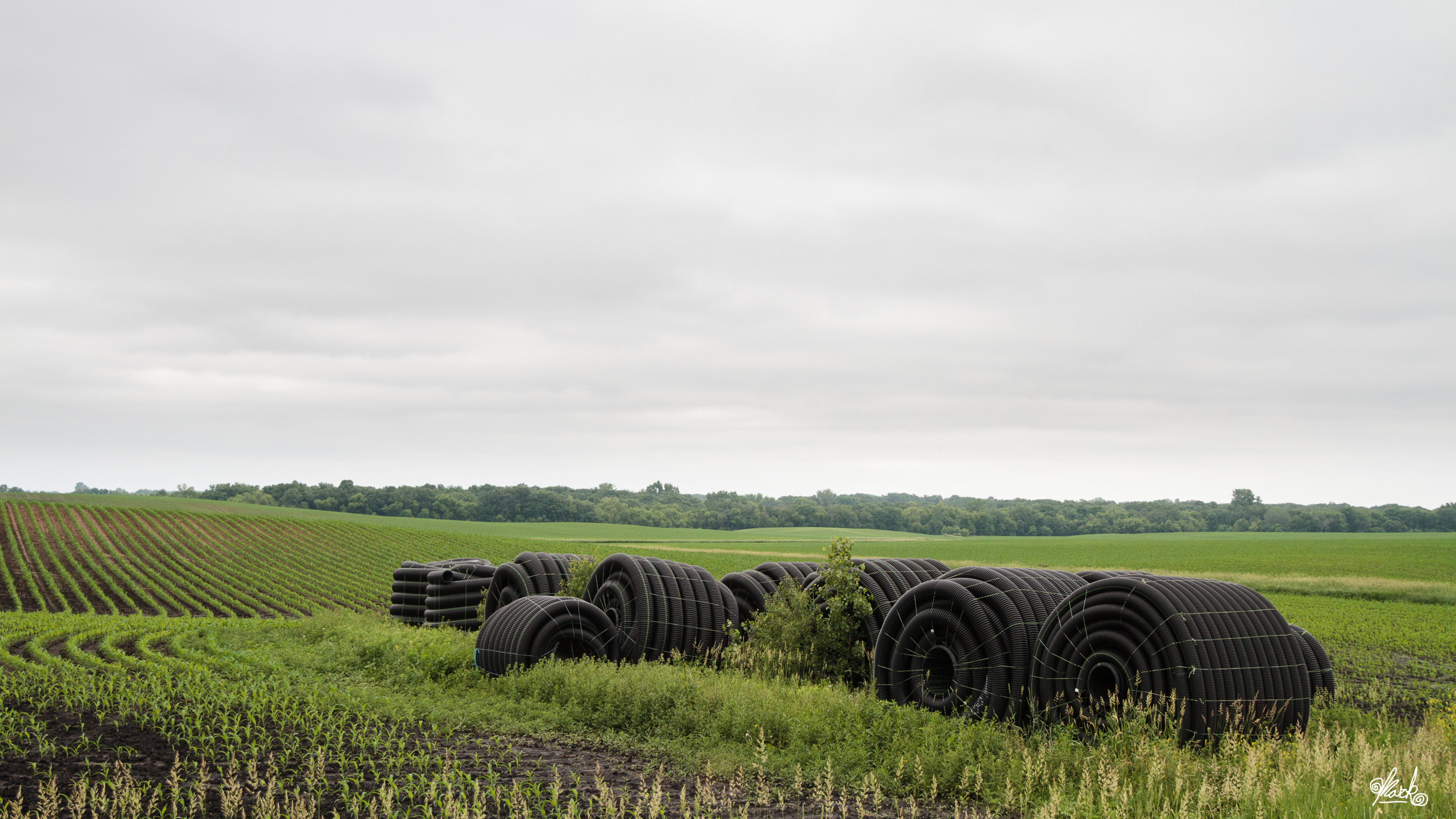 This type of field drainage is becoming a big controversy in the Midwest. The plastic drainage pipes are burried in the field and do a good job of keeping conditions right for crops. The problem is that it also drains fertilizers and pesticides more directly to streams and rivers, increasing nitrate and pollutant levels in drinking water. Farmers have had decades of financially difficult times, so who can blame them from trying to be a little momre profitable? Changes to farming practices to protect water are good for all of us, but they will need to come with financial incentives to get support from the agricultural community.