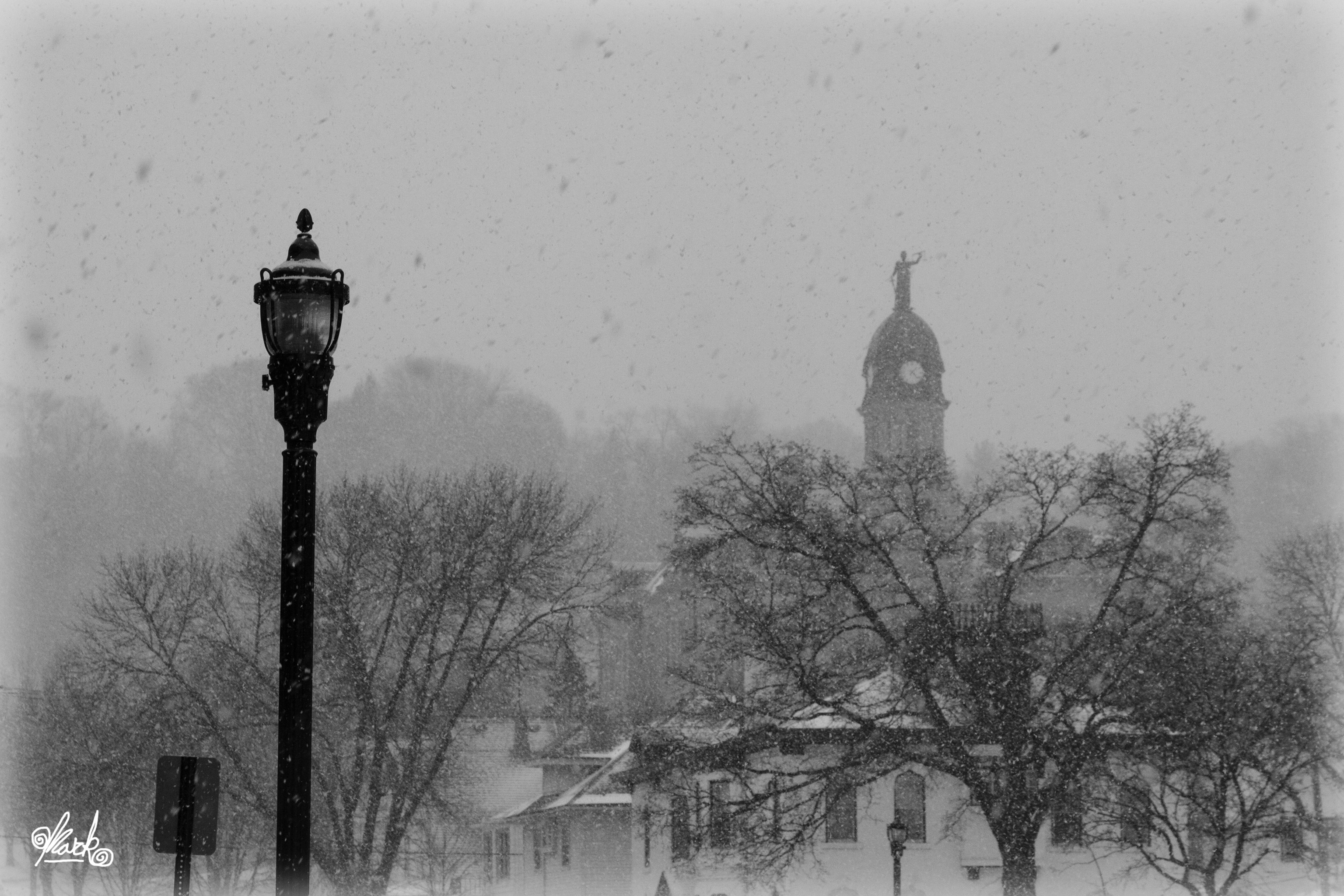 The edges have a white vignette, just to soften the edge of the photo a little. Actually, Herman the German is in the next town over and that's Lady Justice on top of the absurdly large old courthouse in Mankato. It finally quit snowing at noon the next day, leaving eight inches of heavy, wet snow. Shoveling the driveway was like trying to move concrete!