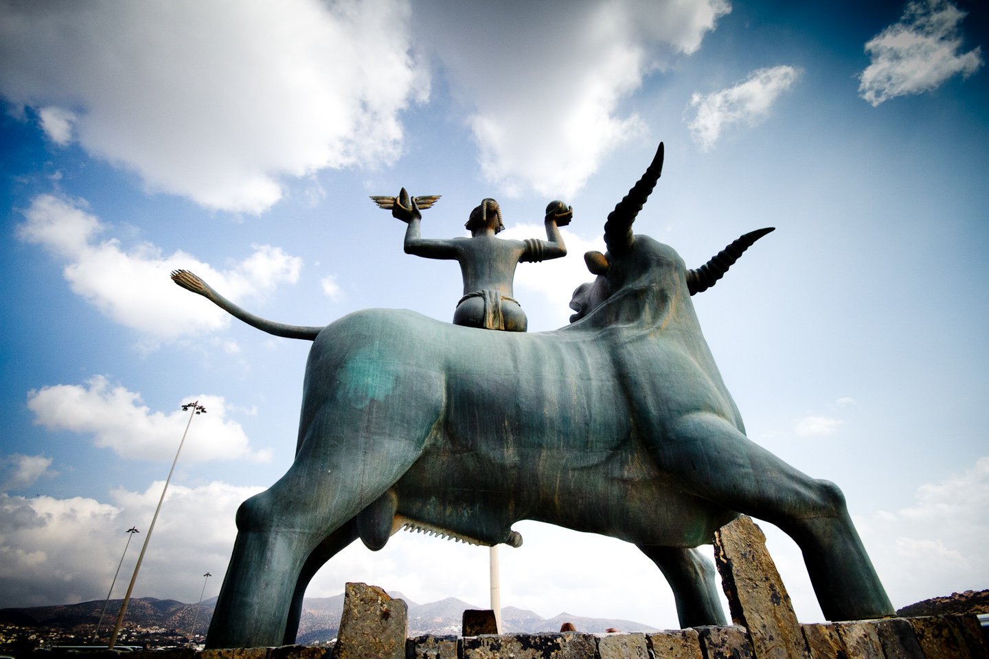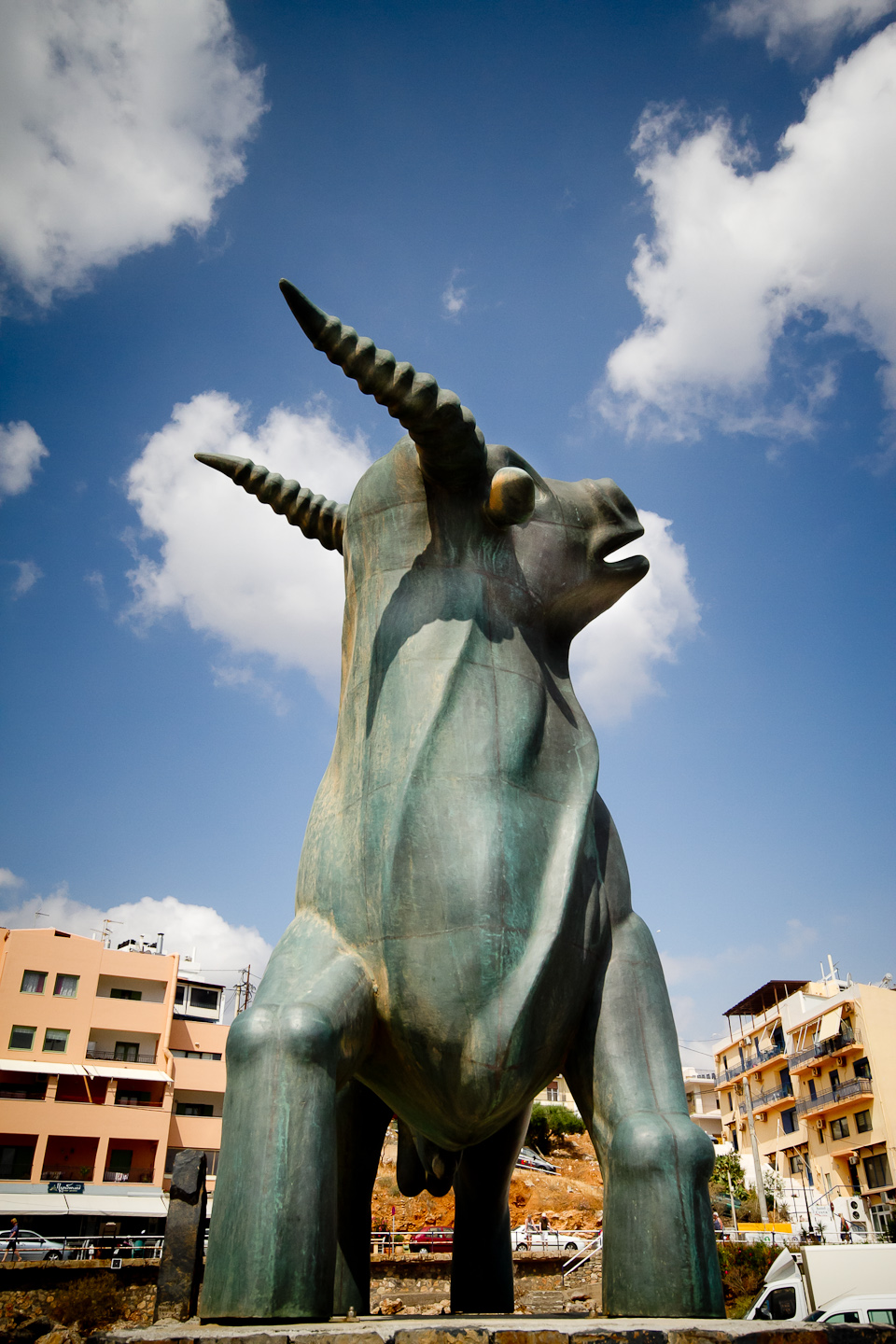 That is the myth that gave it’s name to the continent of Europe and the inspiration for a 4 meters in height and about 6 tons in weight brass statue that you can see if you visit the town of Agios Nikolaos on the east side of the island of Crete in Greece. A second statue made by the same Cretan artists is in front of the European Parliament in Strasbourg. This pair of sculptures is meant to symbolize the unity of the European civilization.