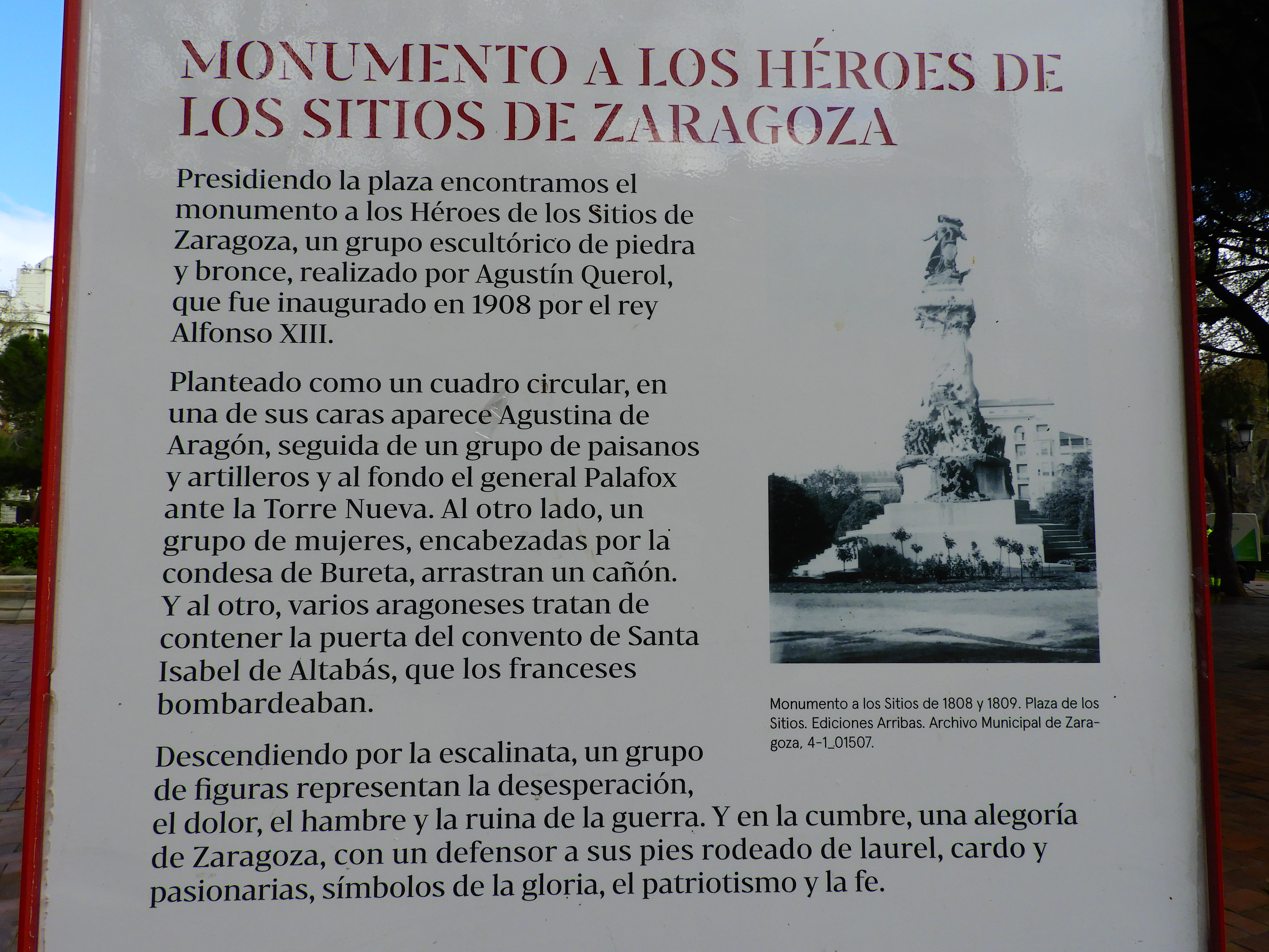 Inmediatamente después de la guerra de la Independencia y tras los acuerdos y decretos de las Cortes de Cádiz que reconocían a aquellas ciudades heroicas y a los defensores que destacaron por sus acciones heroicas durante los asedios y la guerra, se sucederán al menos ocho proyectos de monumentos en Zaragoza al general Palafox y a los defensores. También hubo tres proyectos en los primeros años del siglo XX, dos de ellos (propuestos por los arquitectos Félix Navarro y Ricardo Magdalena) consistían en la reconstrucción de la Torre Nueva, demolida hacía apenas diez años. Pero el que se realizará será el presentado por Agustín Querol. En el verano de 1907 presentó tres grands bocetos al óleo, de los que saldrá elegido el que se llevará a cabo.