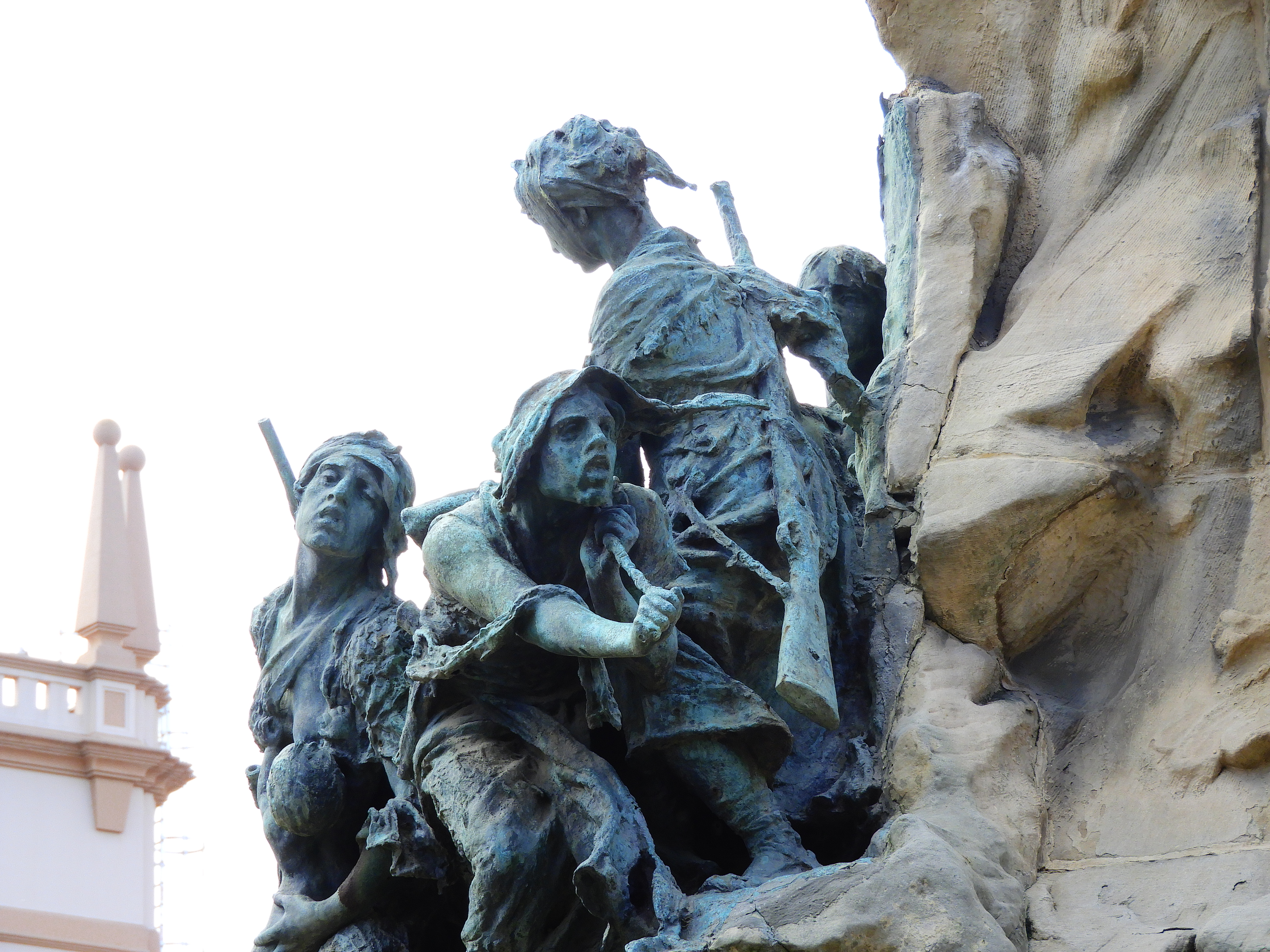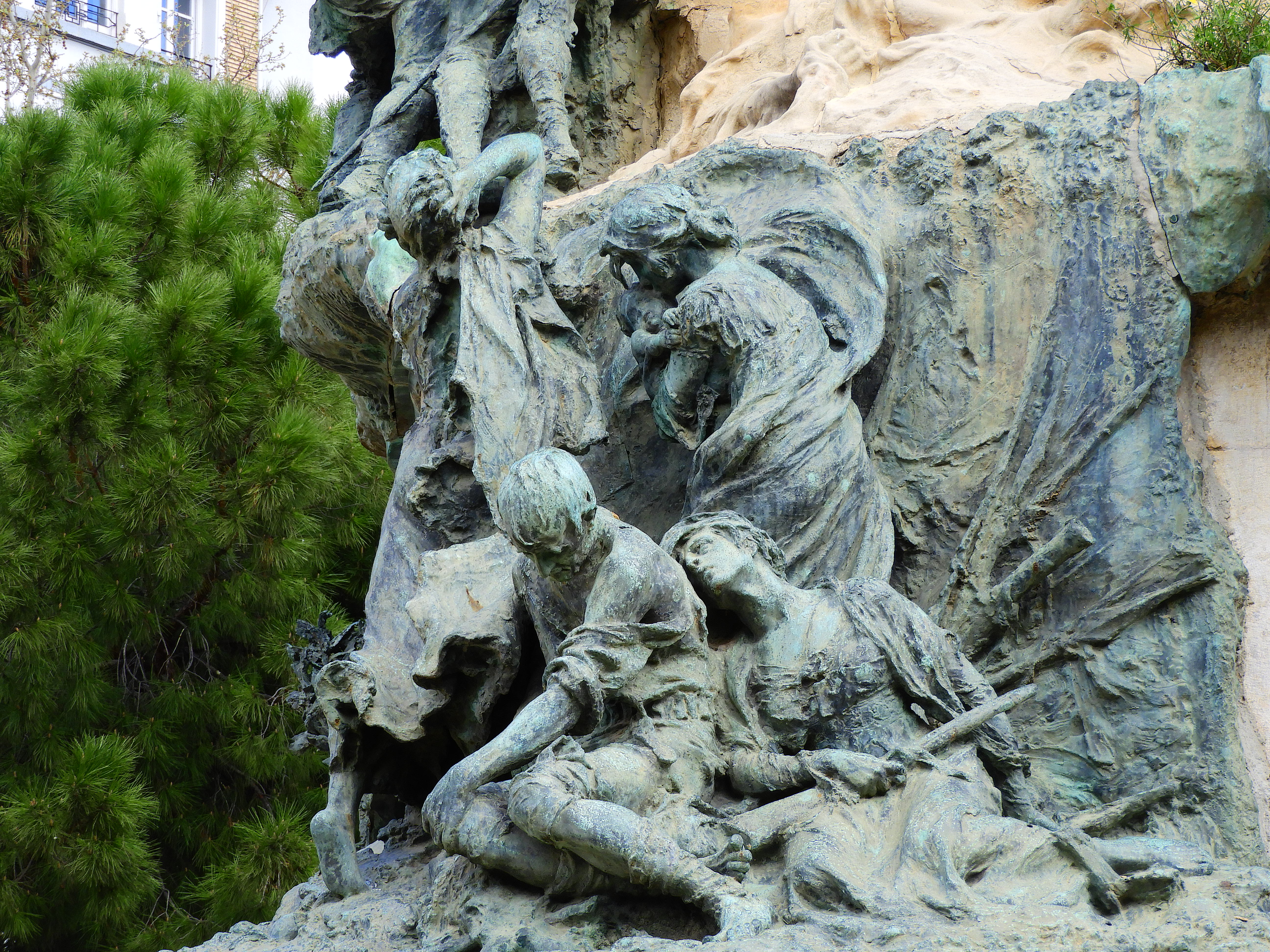 Immediately after the War of Independence and following the agreements and decrees of the Cortes of Cádiz recognizing those heroic cities and the defenders who distinguished themselves for their heroic actions during the sieges and the war, at least eight monument projects to General Palafox and the defenders were launched in Zaragoza. There were also three projects in the early years of the 20th century, two of which (proposed by architects Félix Navarro and Ricardo Magdalena) involved the reconstruction of the Torre Nueva, demolished just ten years earlier. However, the one that was finally realized was the one presented by Agustín Querol. In the summer of 1907, he submitted three large oil sketches, from which the one to be built was chosen.