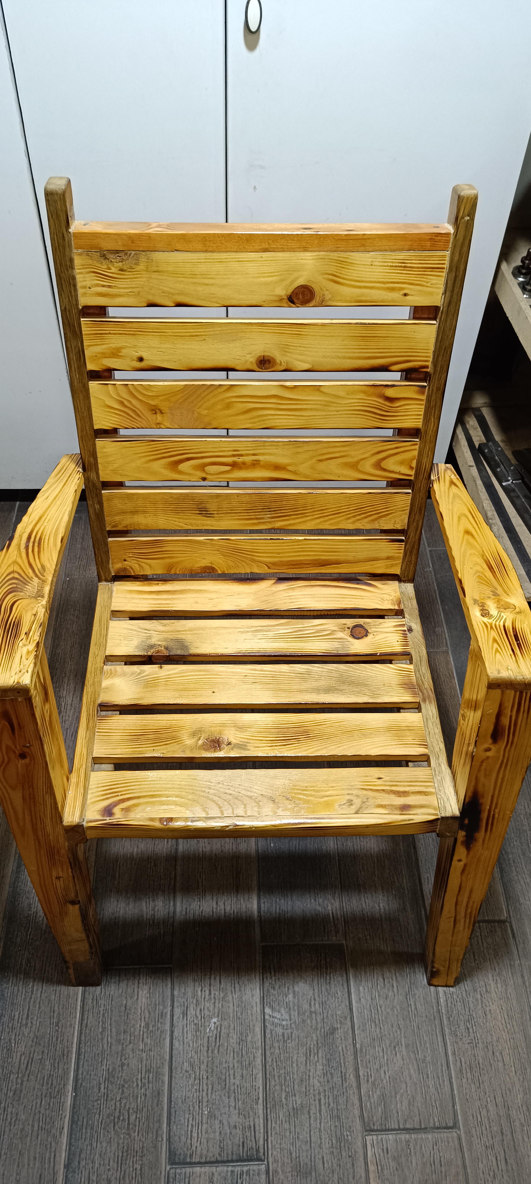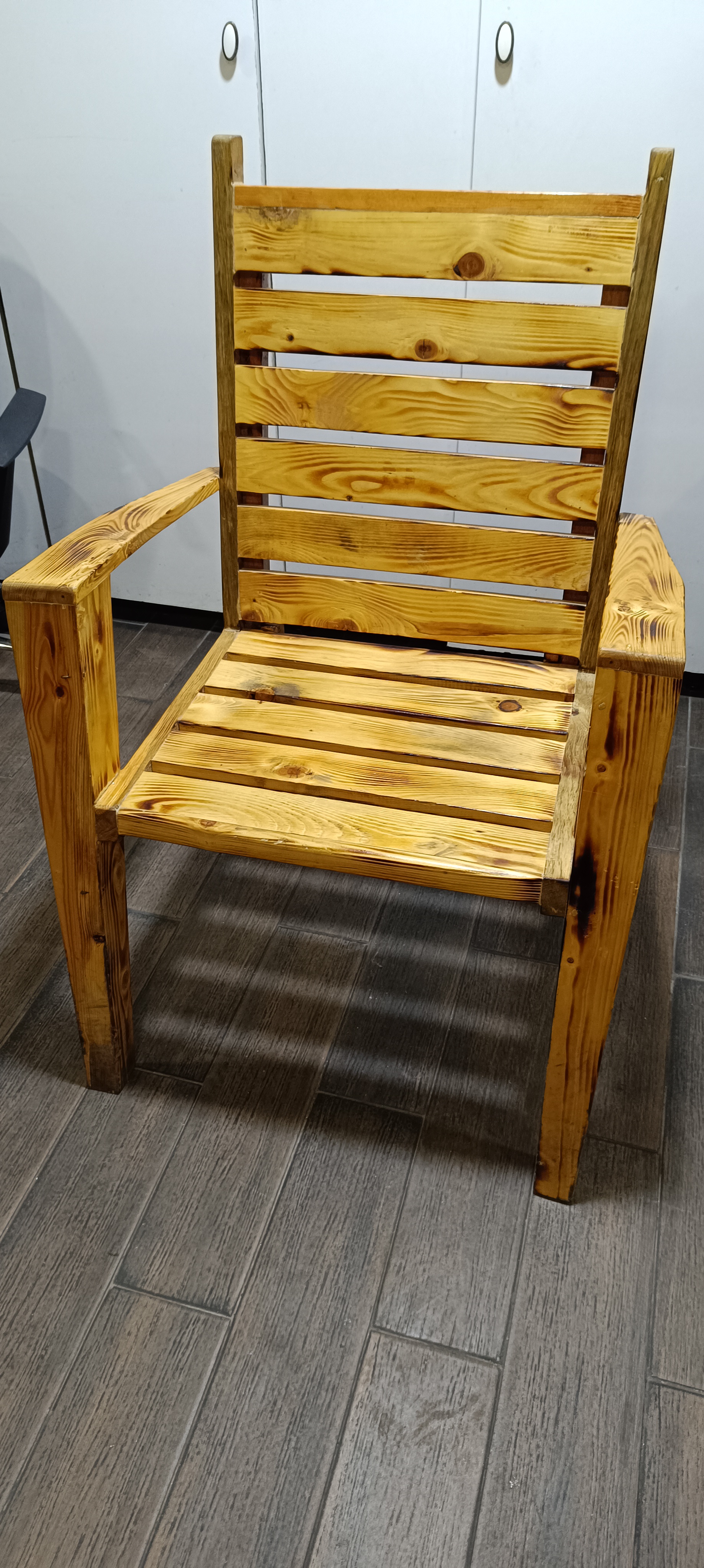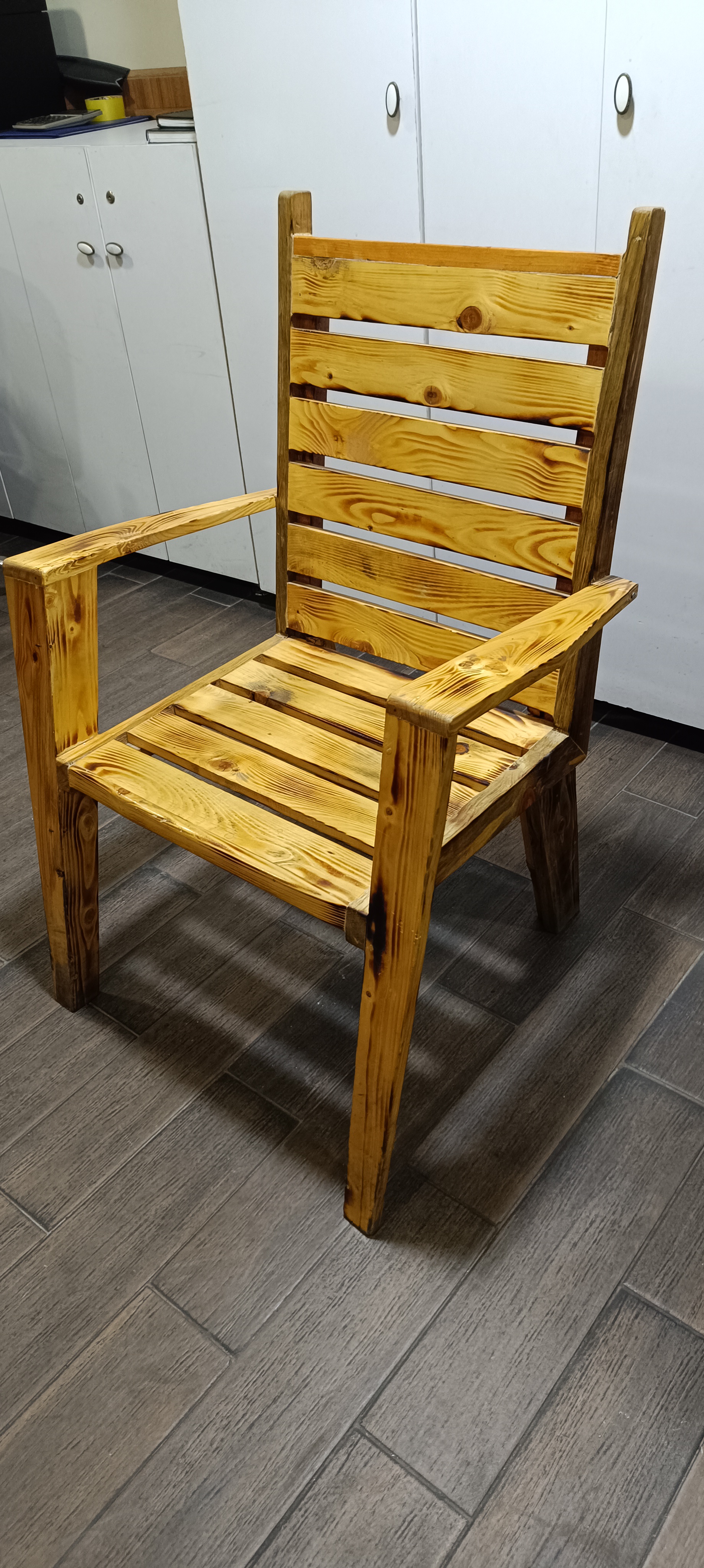 I wanted to share with you the photos of the chair we made on a day similar to today. By combining the trees we removed from the pallets with aesthetics, a pleasant work was created.