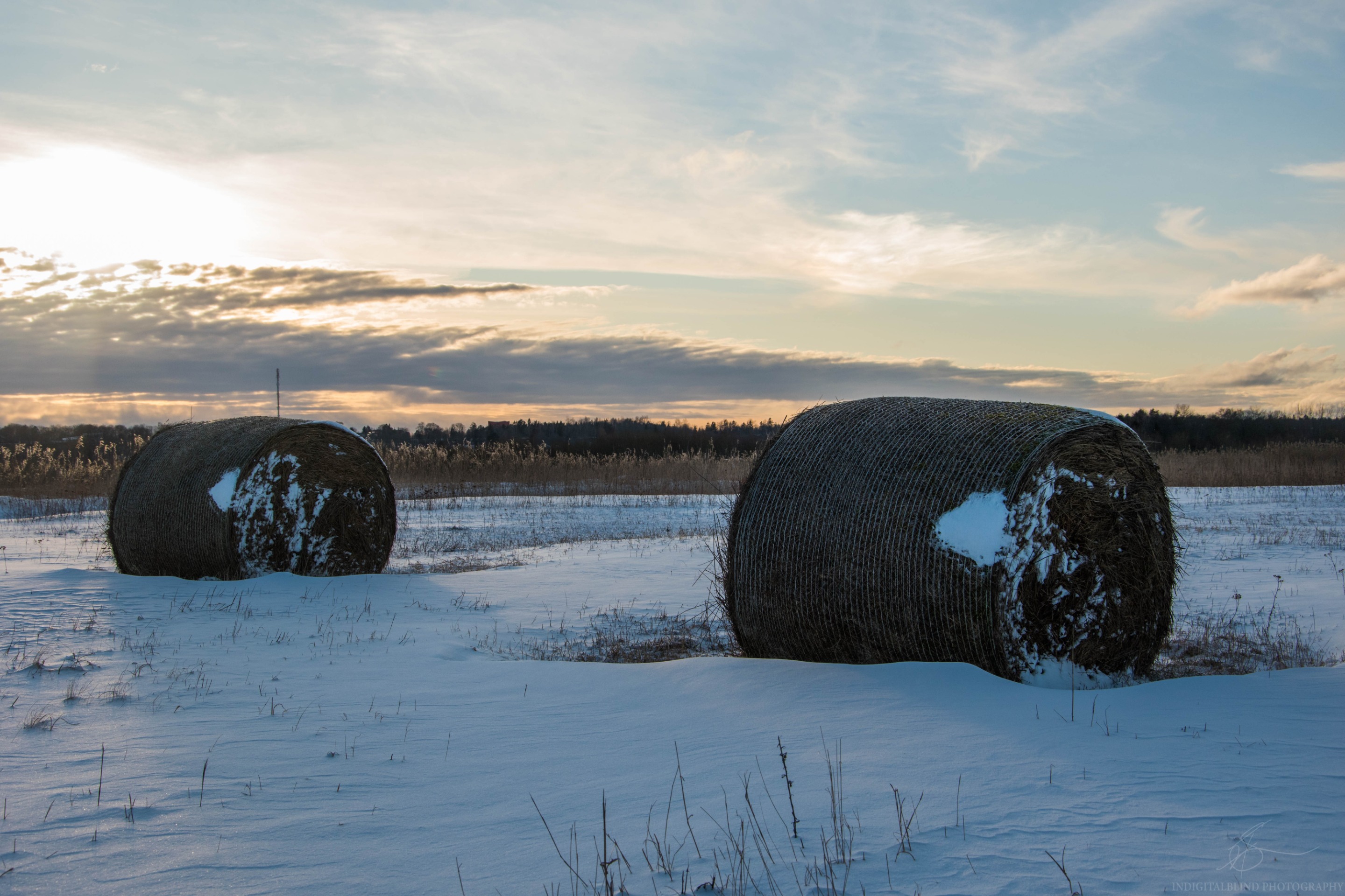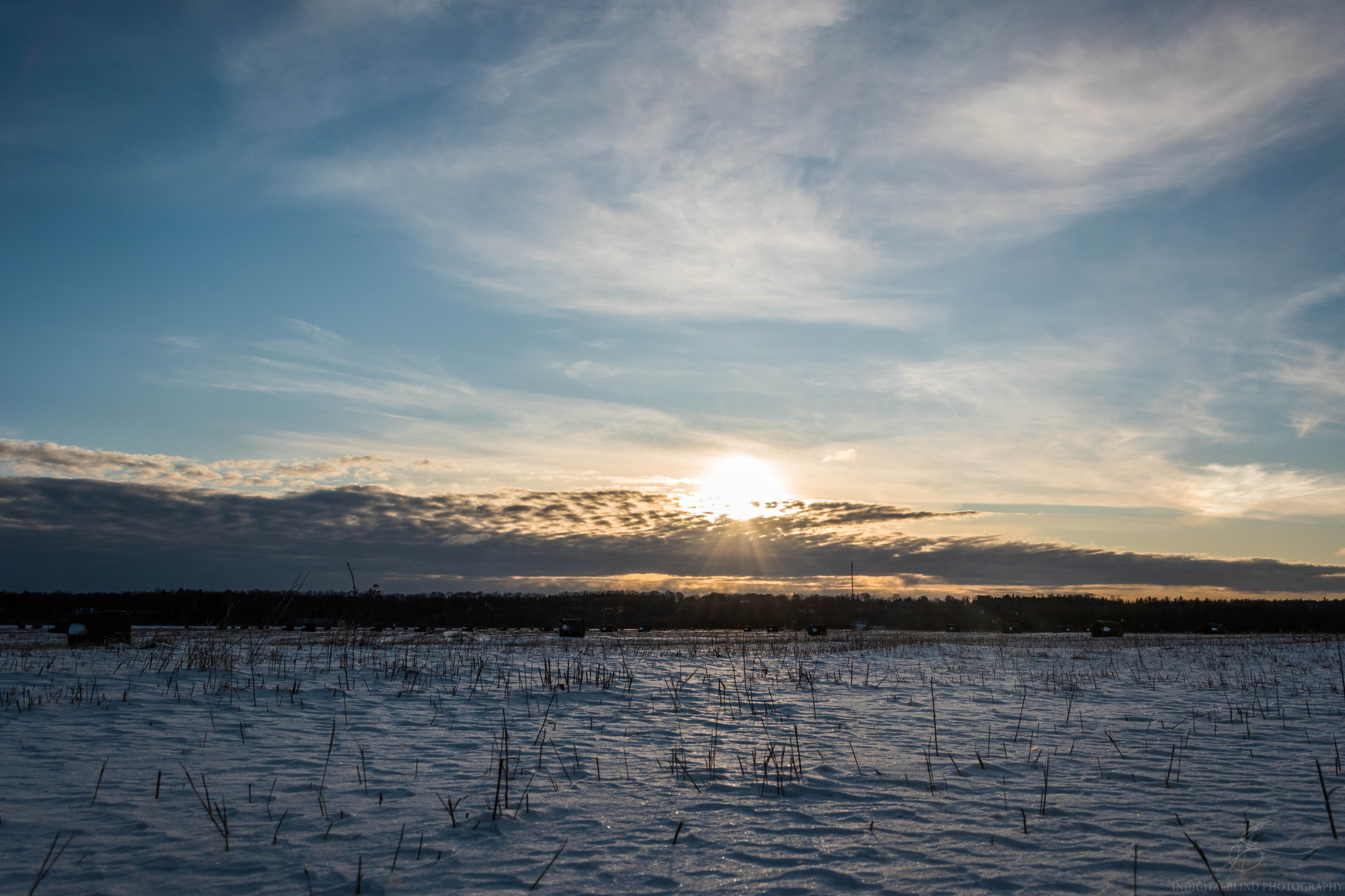 A couple of days I took some photos of the field and today I took the same photos from the exact same places with the snow cover.