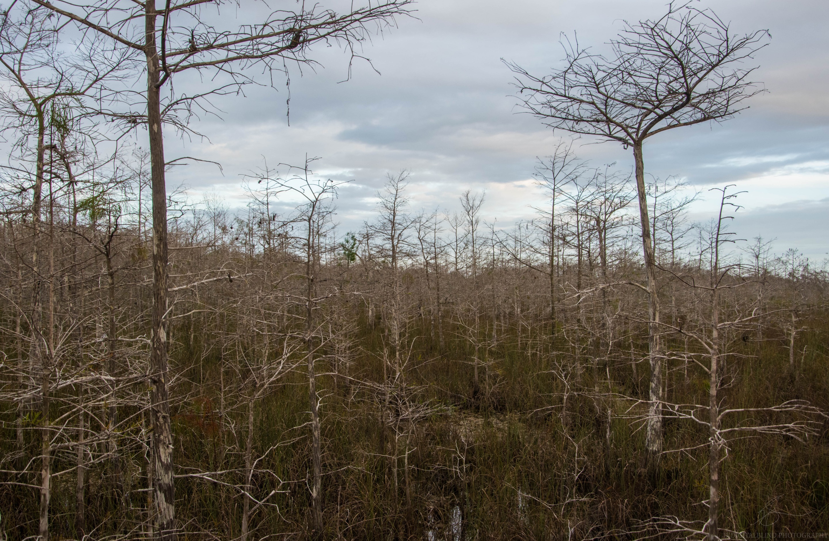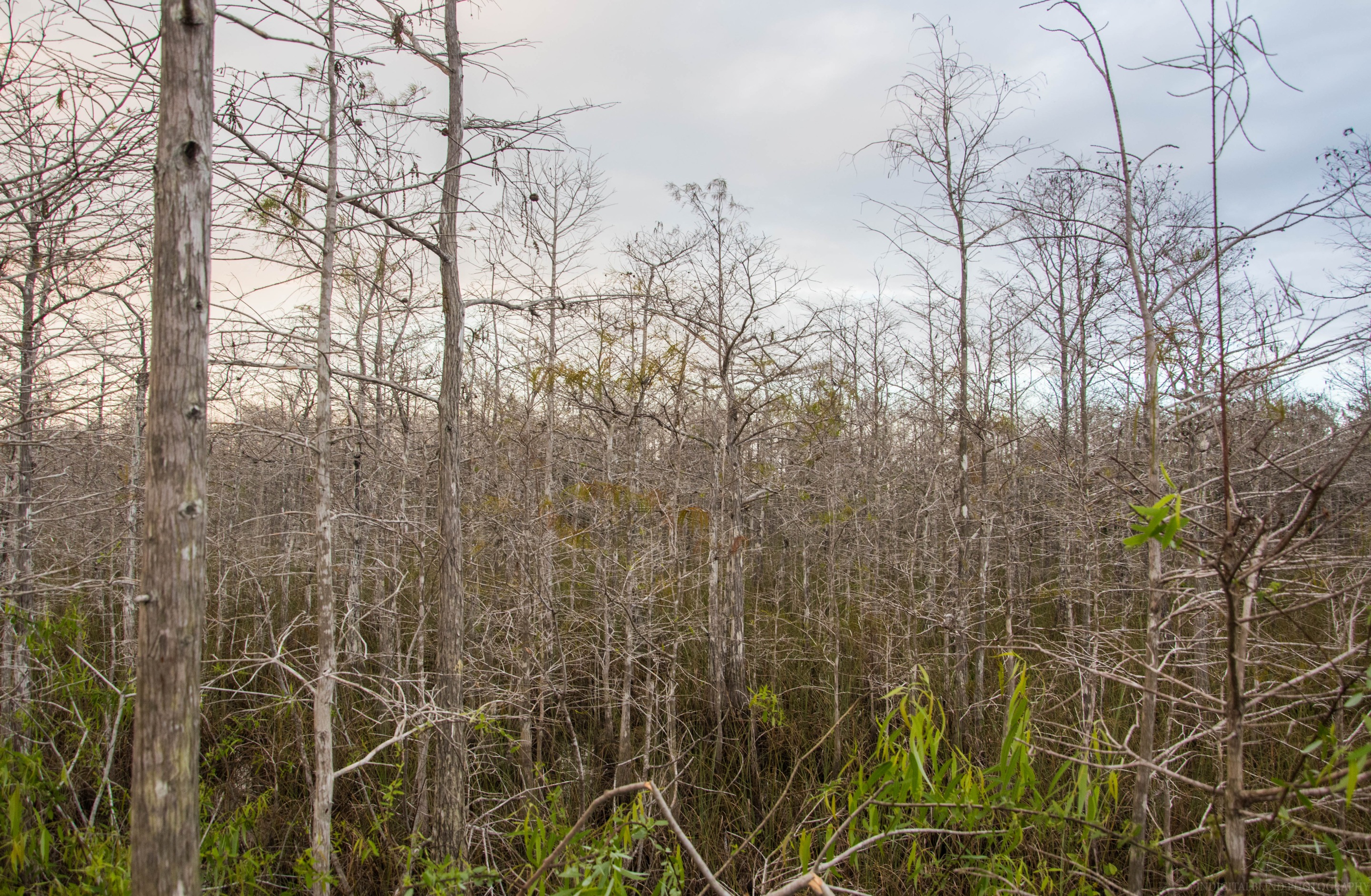 When I was driving in the Everglades national park on the first evening there, we made several stops along the road because there was nature to see and stuff to read. This is one of the places we stopped. An area is full of trees like this.
