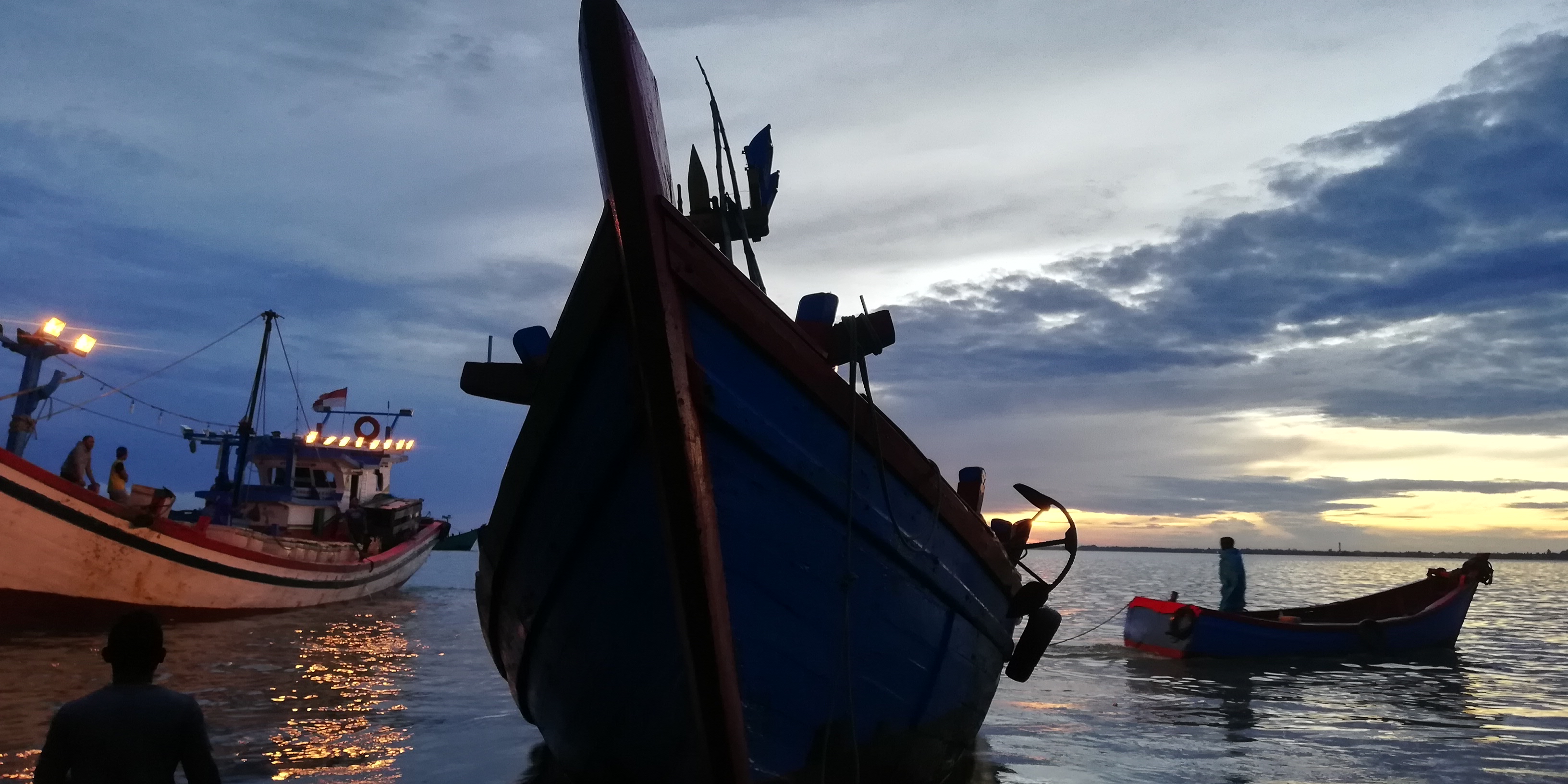 Pada gambar ketiga menampilkan secara keseluruhan aktifitas para nelayan dengan latar belakang sunrise yang sudah terlihat sangat sempurna, tampilan gambar ini sangat memukau dan indah di pandang.