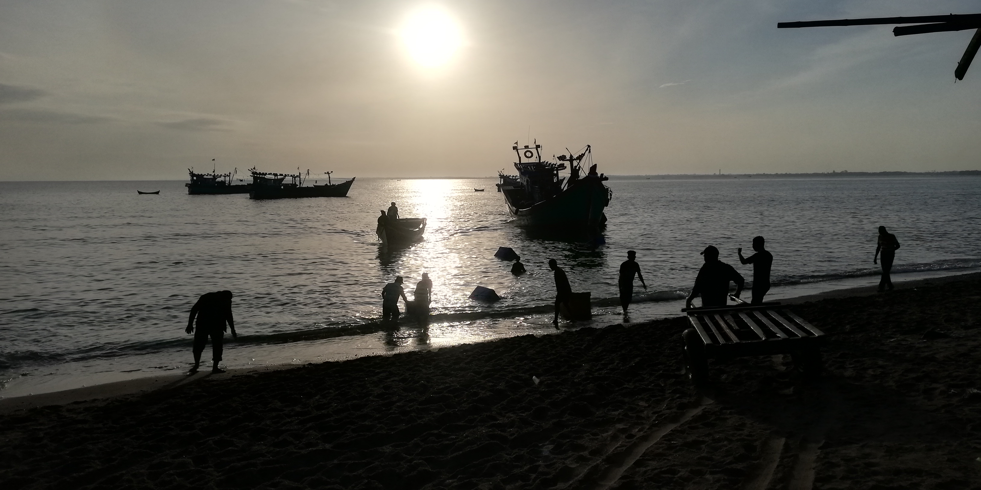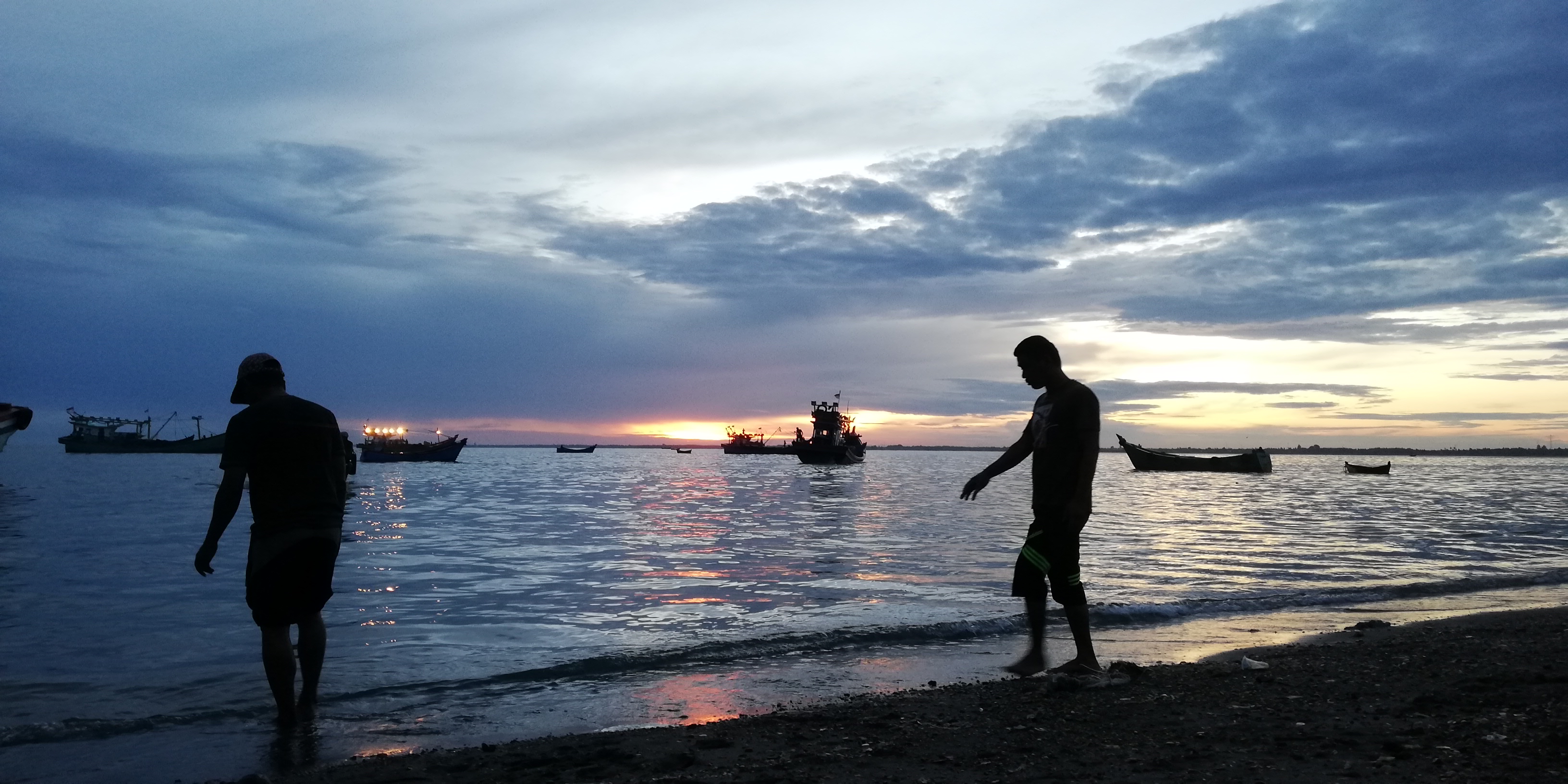Pada gambar kedua menampilkan beberapa pengumpul ikan yang sedang beraktifitas menunggu kapal boat nelayan berlabuh di tepi 0antai, dengan latar belakang matahari yang baru mulai terbit membuat gambar ini terlihat sangat luar biasa dan indah untuk di abadikan.