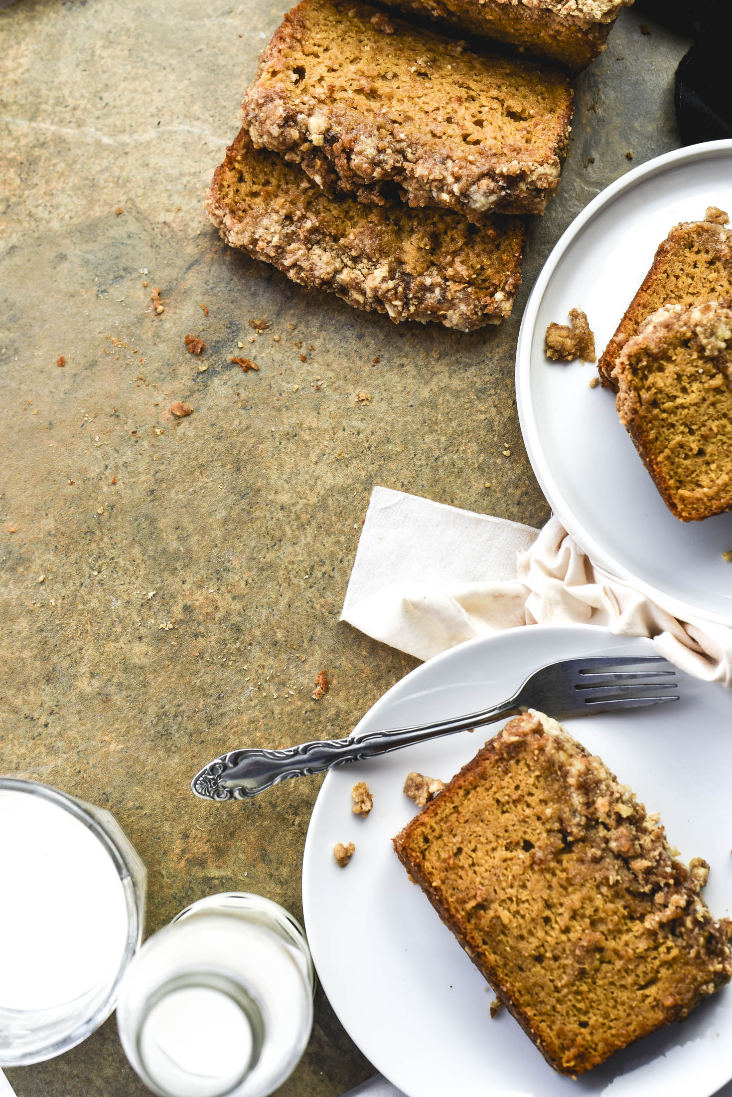 So can we just take a second to address the whole quick bread situation. You see, I was telling a friend the other day that I realized I haven’t made bread in a while (I was referring to one with yeast). That’s when he reminded me about this sweet potato bread that I’d shared with him and I had to clarify the difference between a quick bread and a yeast bread. Really though, why don’t we just call this type of recipe a “muffin loaf” or an “unfrosted crumb cake”? I mean, that’s what it is, isn’t it? I guess it’s a psychological thing and maybe we all subconsciously think if we call it a “bread” it’s somehow healthier than a crumb cake.
