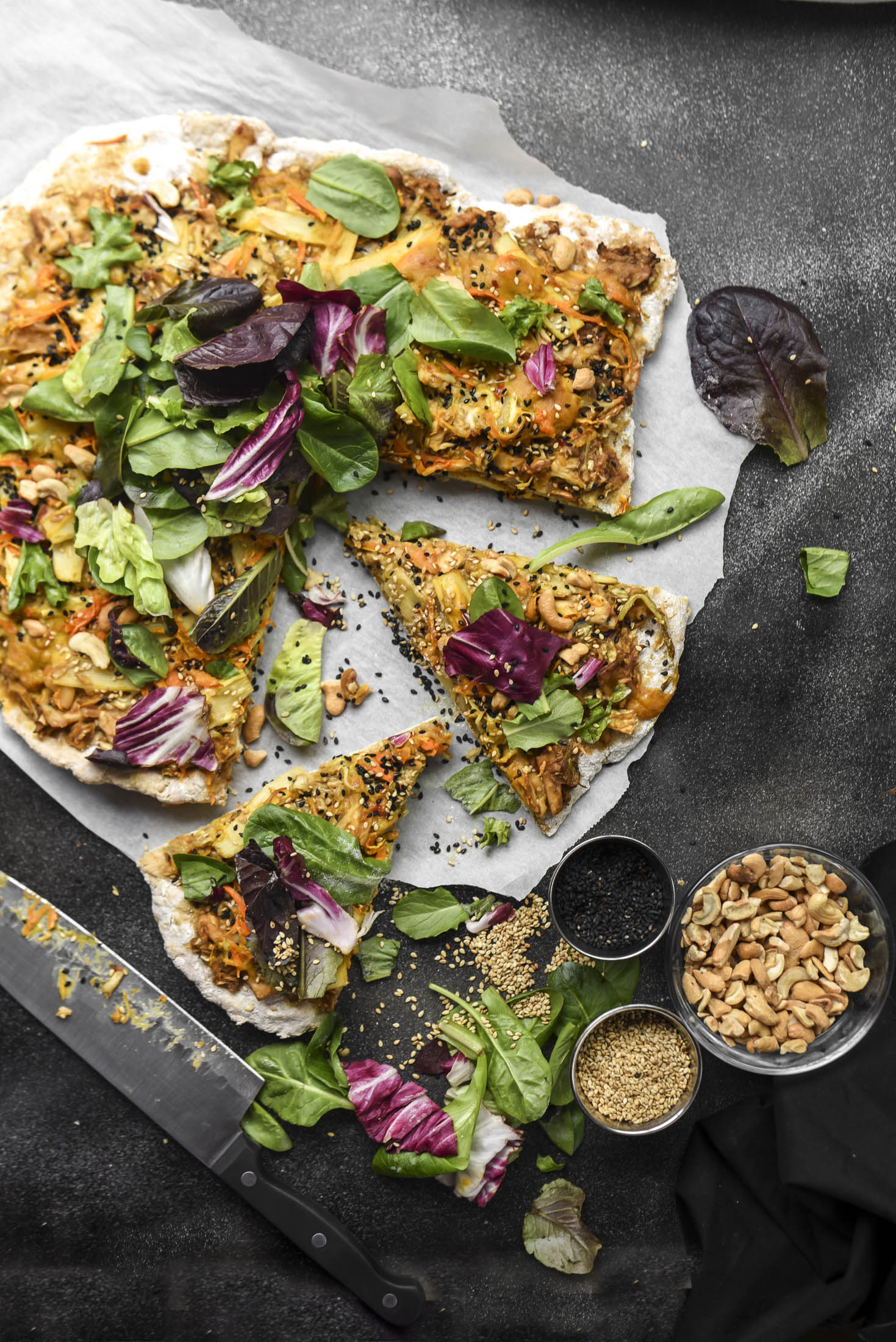 I finished this pizza off with a sprinkle of cheese. Now I know that there isn’t a lot of cheese in Asian cooking so it might sound like an odd combination and you can totally leave it off. Although, I know a few people that would never consider this a pizza without some cheese and I think you might be surprised how well it works. Okay, so I really hope you love this one!