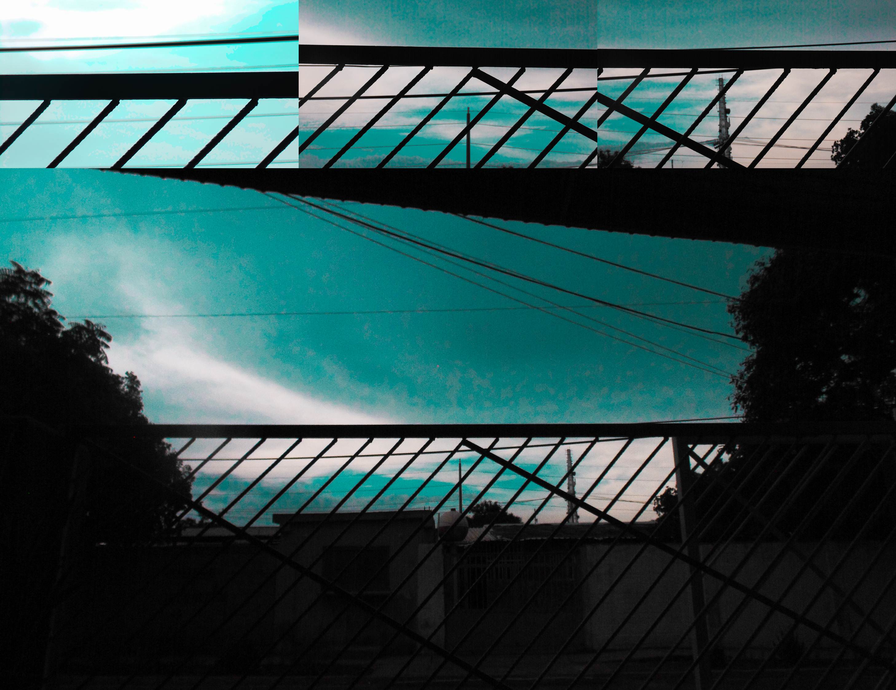 Esta vez se trata de una composición fotográfica en la que quise destacar lo rústico cotidiano de la estructura de la fachada de una casa y su cerca, mientras; el fondo color aguamarina destaca en el cielo y el blanco de las nubes.