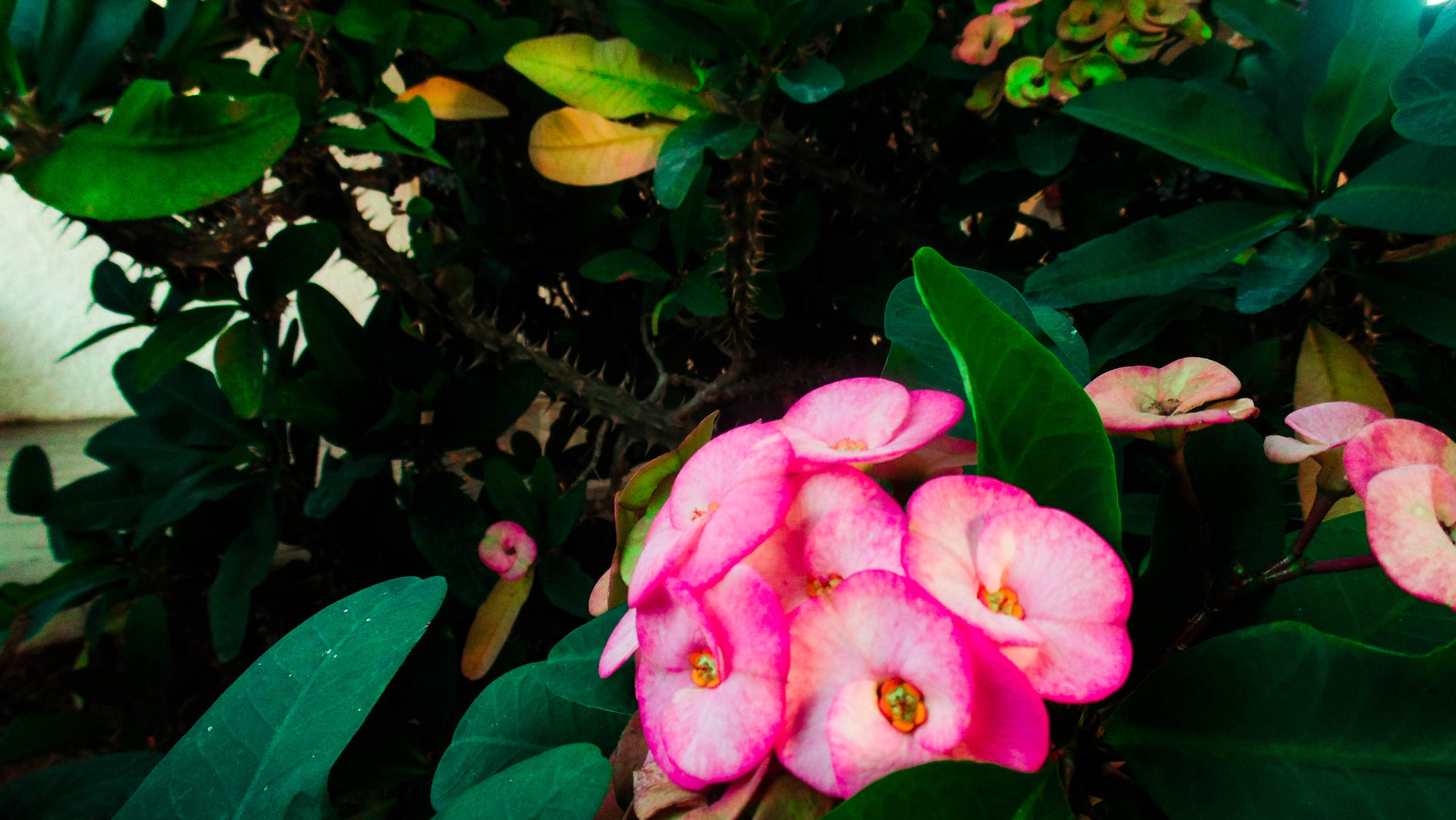 Decidí titular esta práctica fotográfica "Hay flores que tienen espinas" porque en el contexto; esta hermosa planta de flores vivas, tiene en cada tallo un ramal de espinas que miden cada una mas de 2 centímetros siendo así muy puntiagudas y letales para quien se atraviese en su camino.