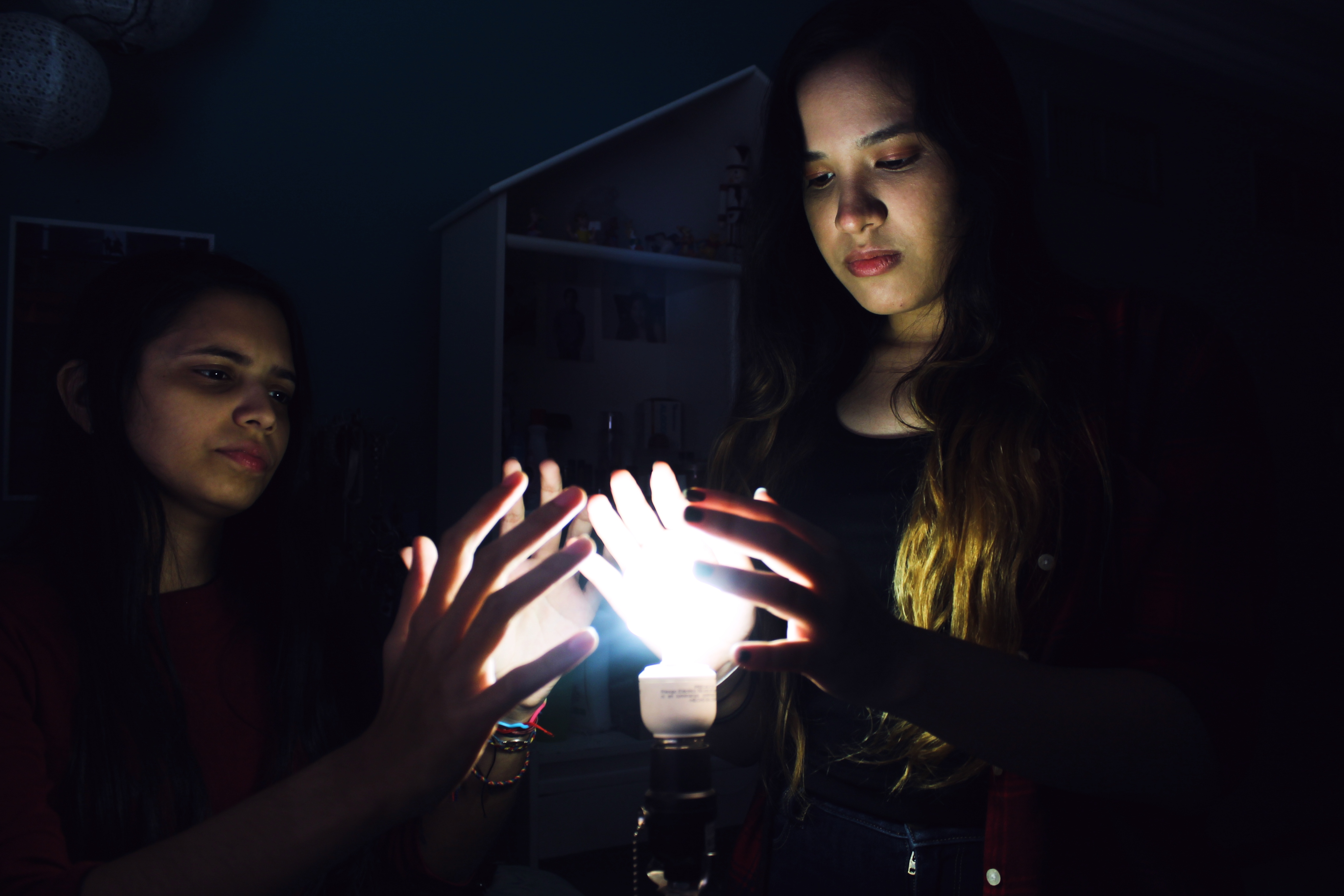 I hope you like my writing, and the photos that I took. I was playing with my friends, taking photos, and suddenly this idea came to my head, about witches around a crystal ball -Charmed inspired- and I tried my best with light bulb and my two friends.