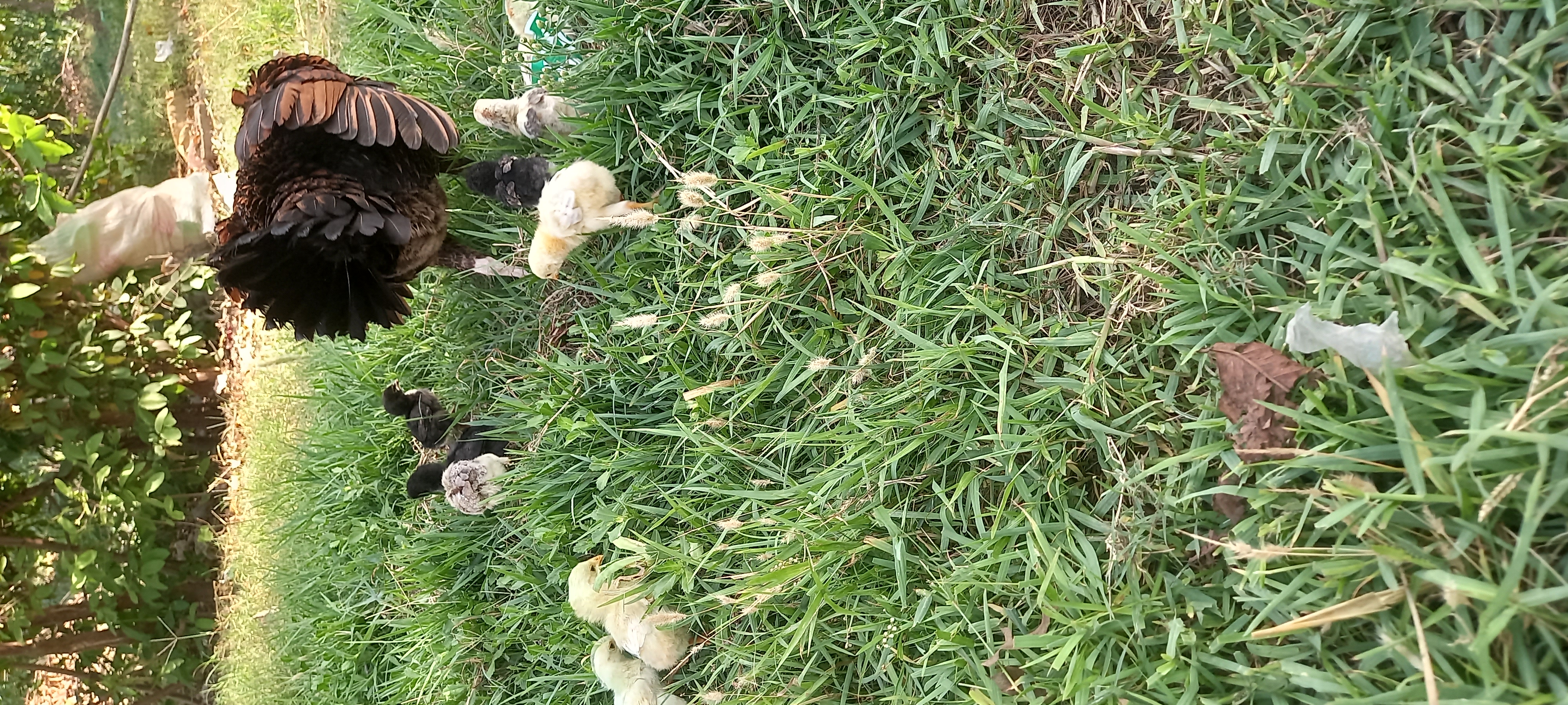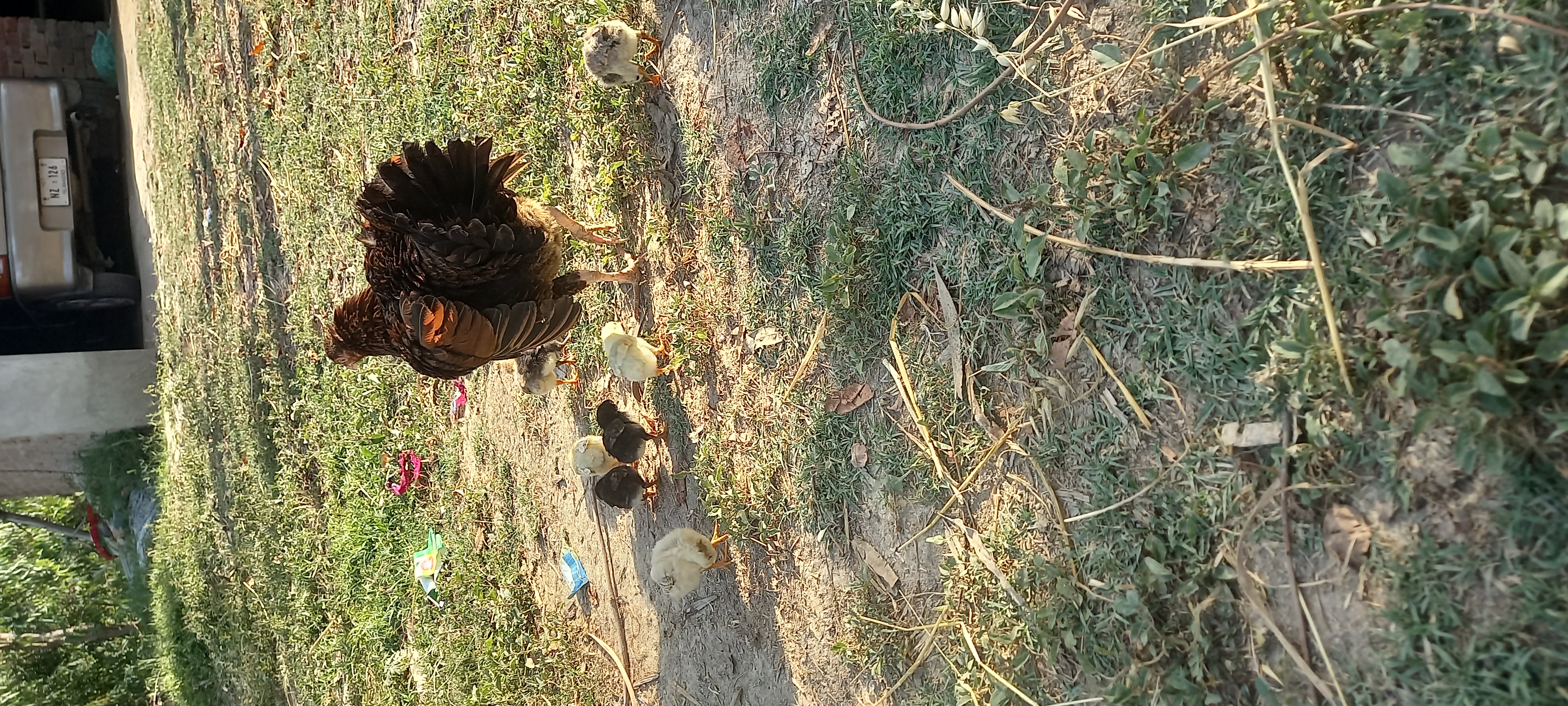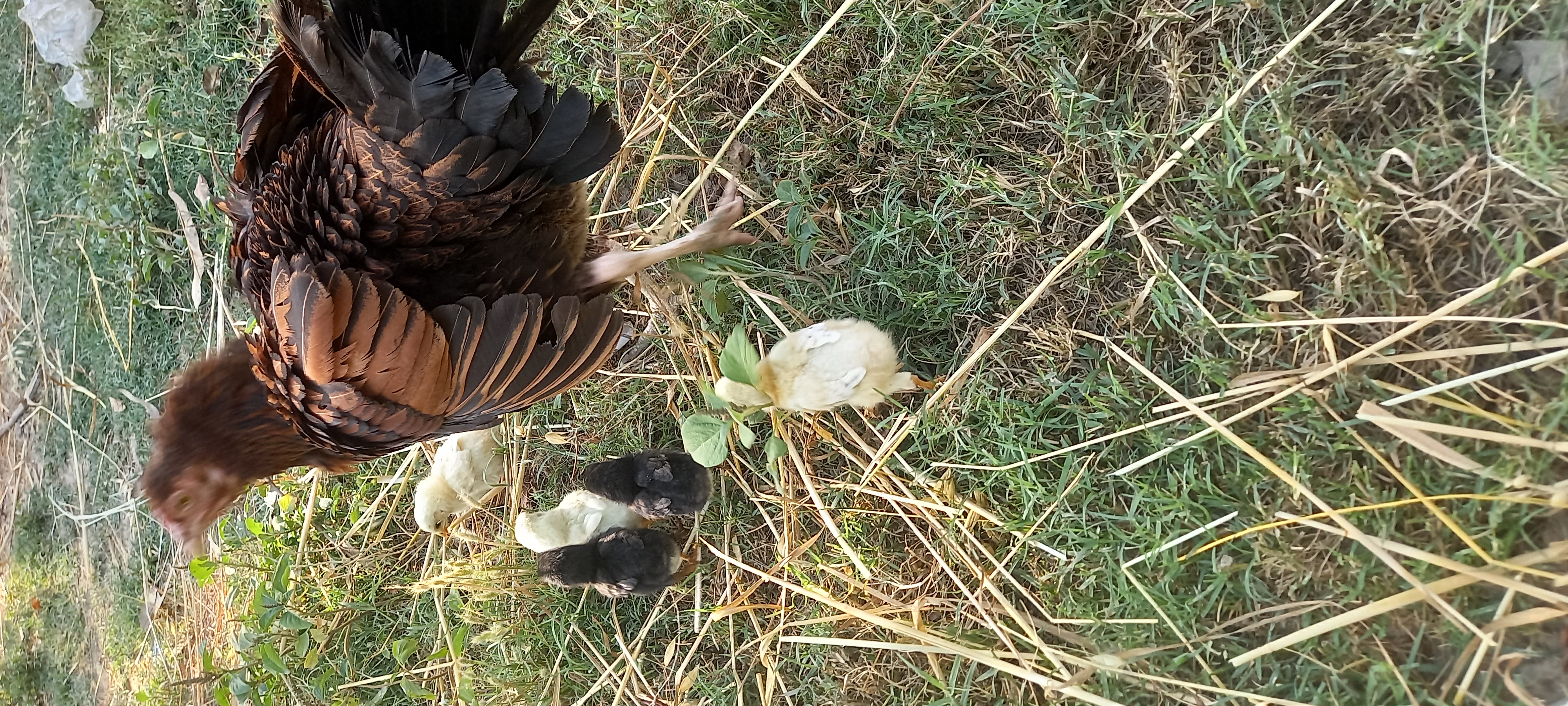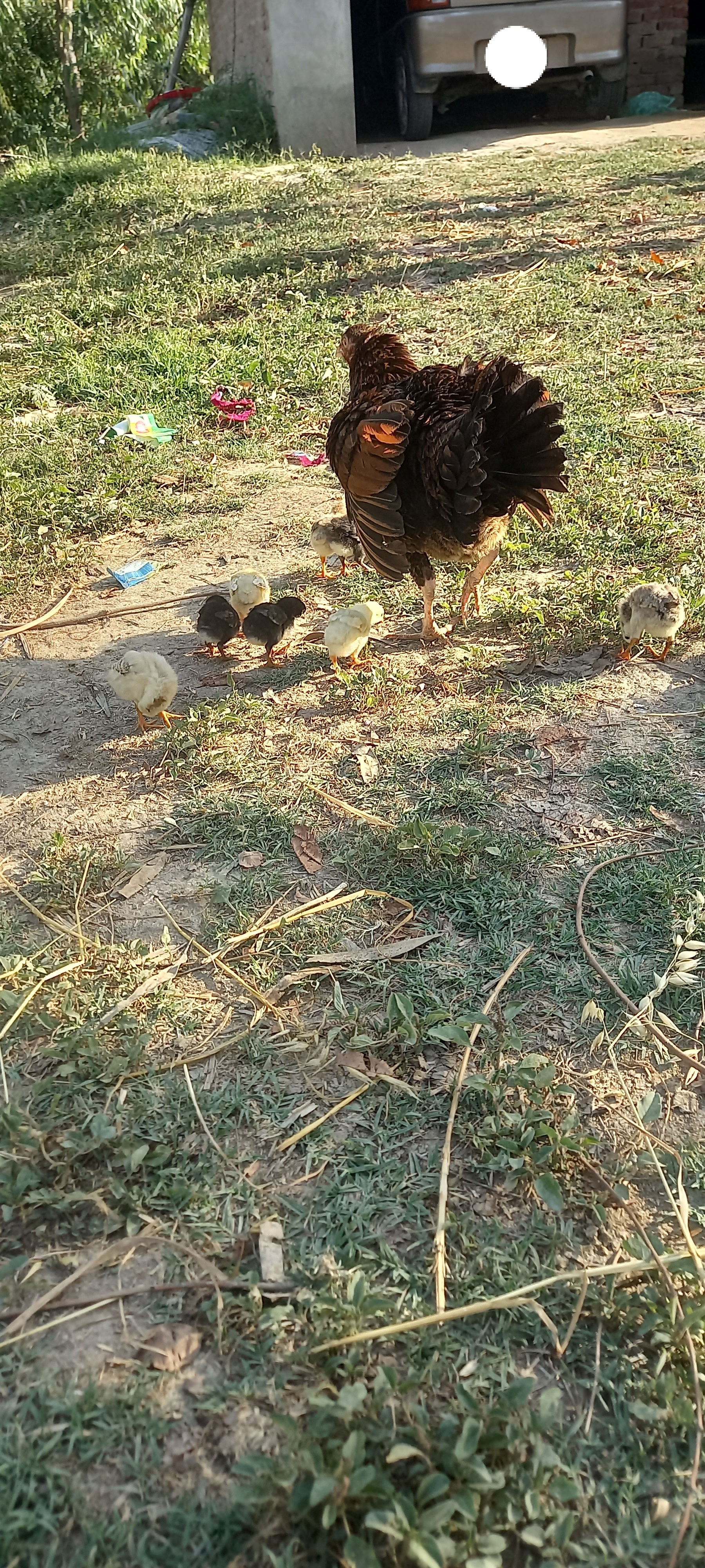 I had the hen sit on the eggs on the 27 March 2025. I had given her 16 eggs, out of which 7 were spoiled and 9 hatched. The hen hatched the chicks after 23 days. The chicks are very cute and are hanging out with their mother.