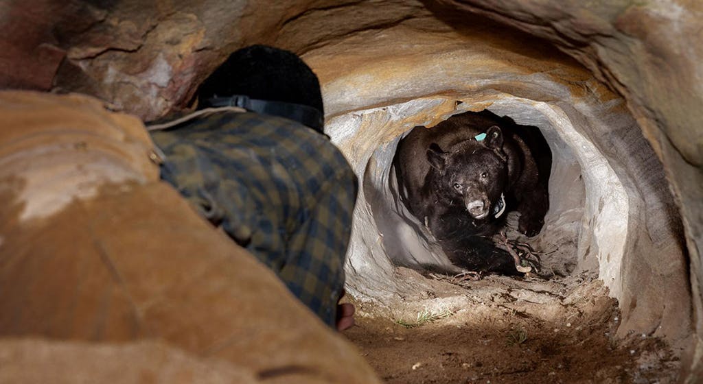 Thirty seconds later, they came flying backward out of the tunnel. The bear they’d collared a year and a half ago now weighed about 350 pounds—and he was awake. Wes had managed to jab him with the syringe, so we waited for the drug to take effect. When black bears hibernate, their breath slows and their body temperature drops by roughly 12 degrees Fahrenheit—low enough to cut their metabolic rate in half, but high enough for them to react to danger. Then, crawling on forearms and knees, I followed Wes, feeling only slightly more secure knowing that he’d be chomped before me if the bear charged. (Learn how not to get attacked by a bear.)