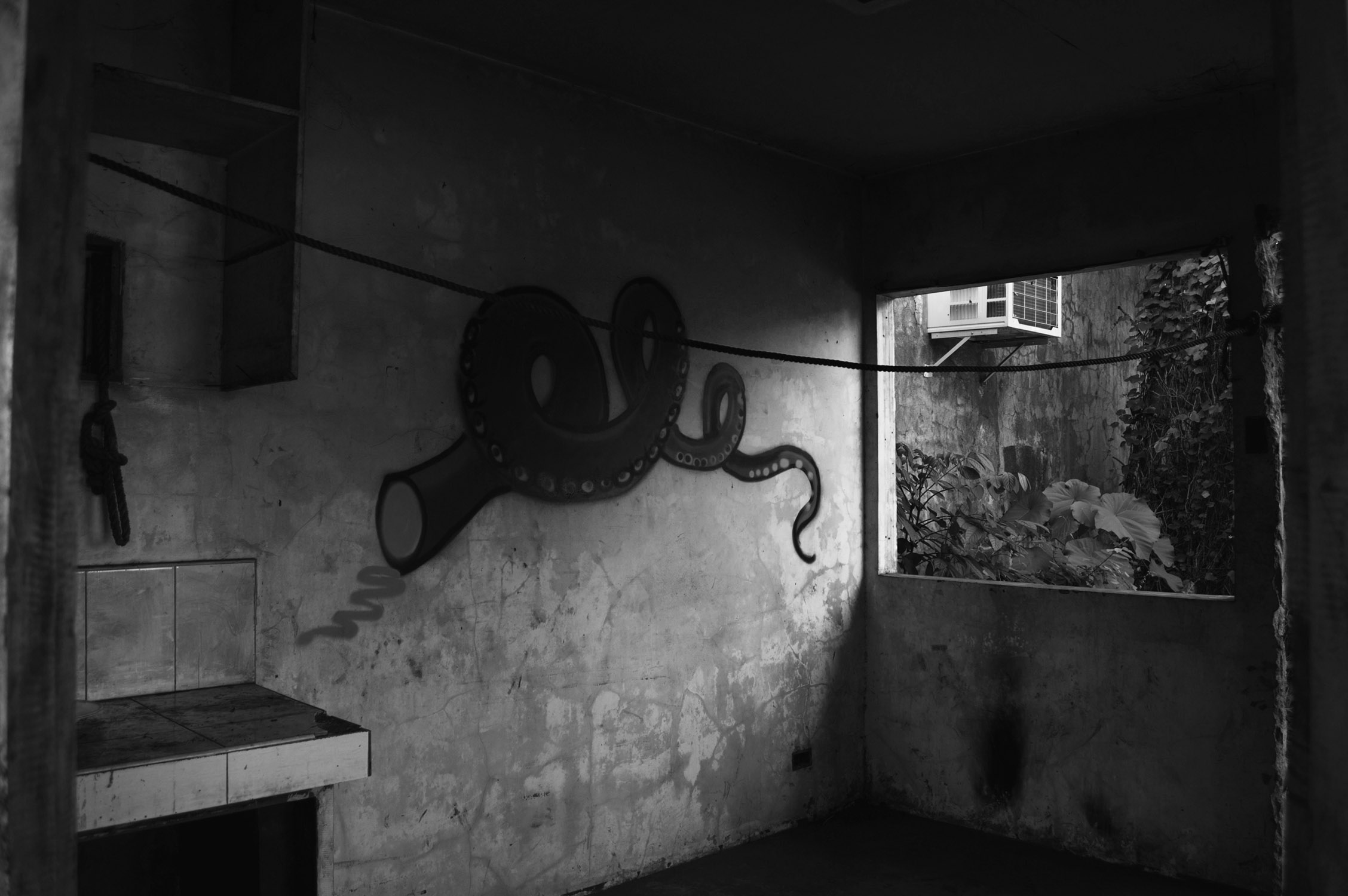 Spooky art in a dark place.