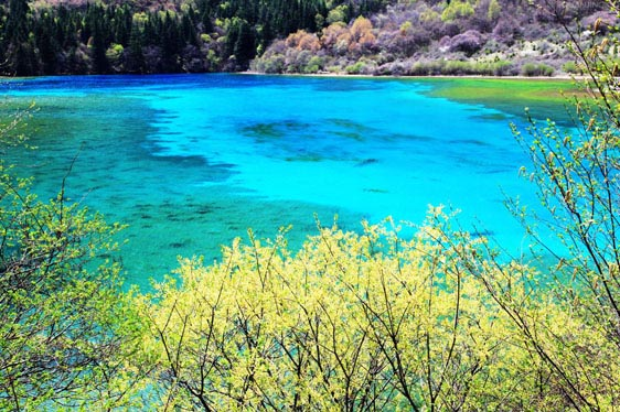 浪漫的秋风也吹来了九寨沟最为灿烂的时节。山林晕染成色,除了绿色以外,还呈现出金黄、火红等色彩,五彩缤纷,倒映在明丽的湖水中,湖山同色,湖水也斑斓似锦了,一时间竟然不能分清哪里是山哪里是水,十分迷人。