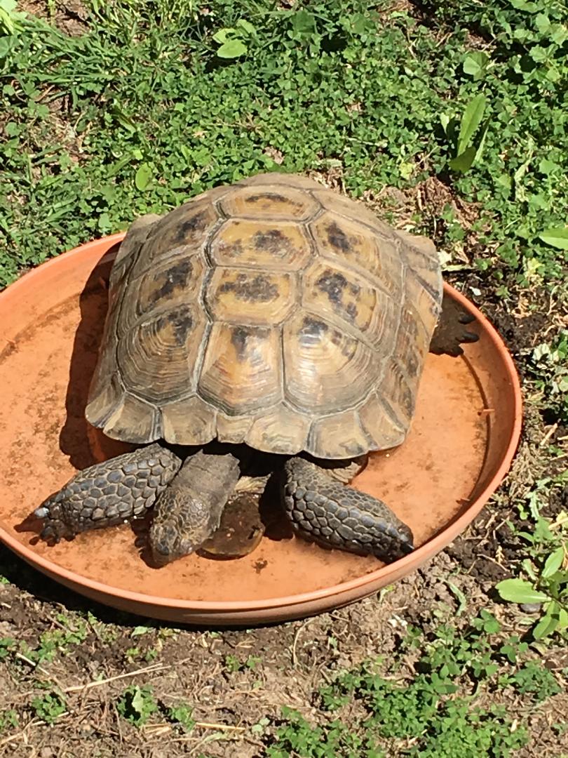Nice turtle! When I was small, I had 2 small turtles. They were smaller then my hand. But yours is really giant