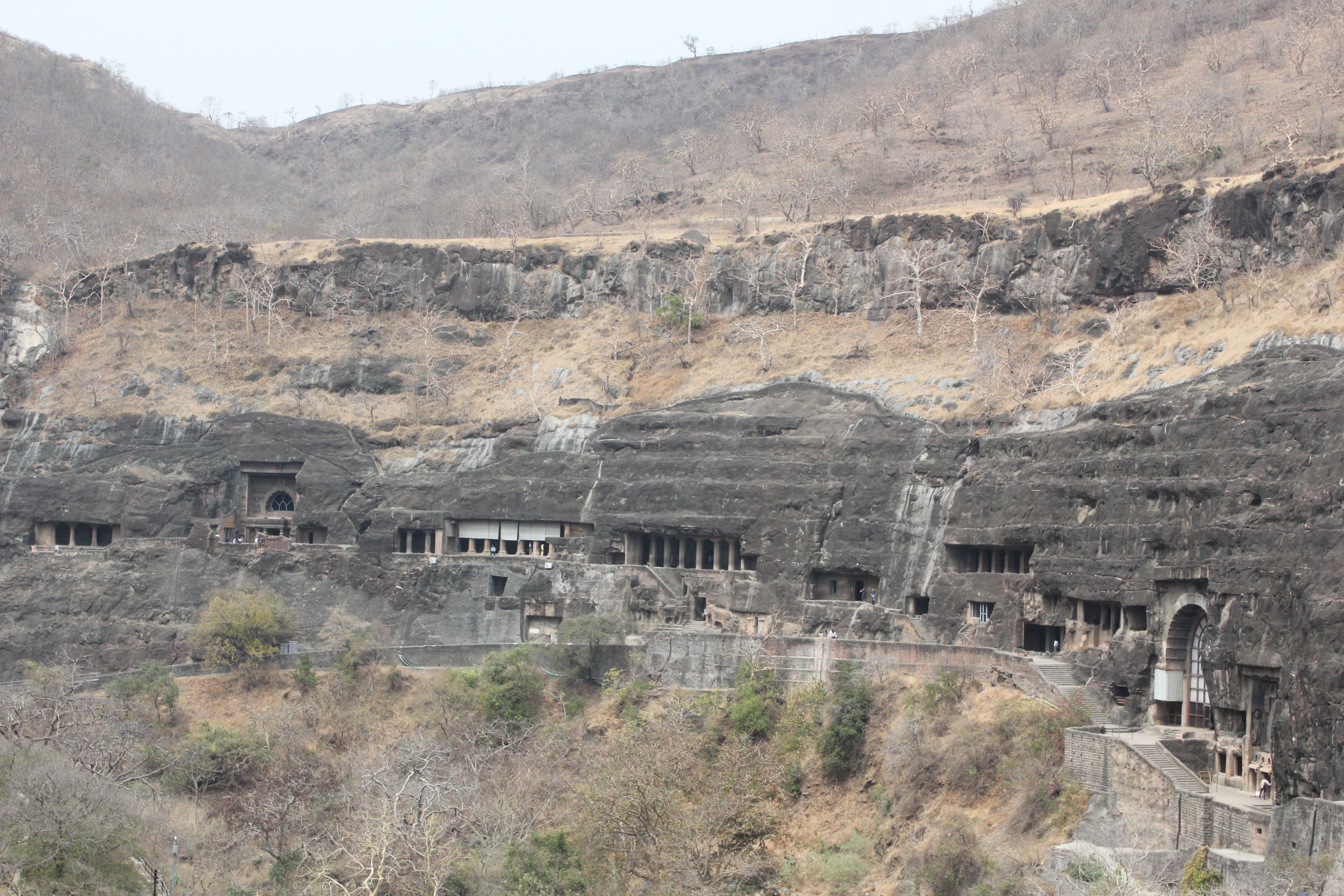 The Ajanta Caves are 29 rock-cut Buddhist cave monuments which date from the 2nd century BCE to about 480 CE in Aurangabad district of Maharashtra state of India. The caves include paintings and rock-cut sculptures described as among the finest surviving examples of ancient Indian art, particularly expressive paintings that present emotion through gesture, pose and form.