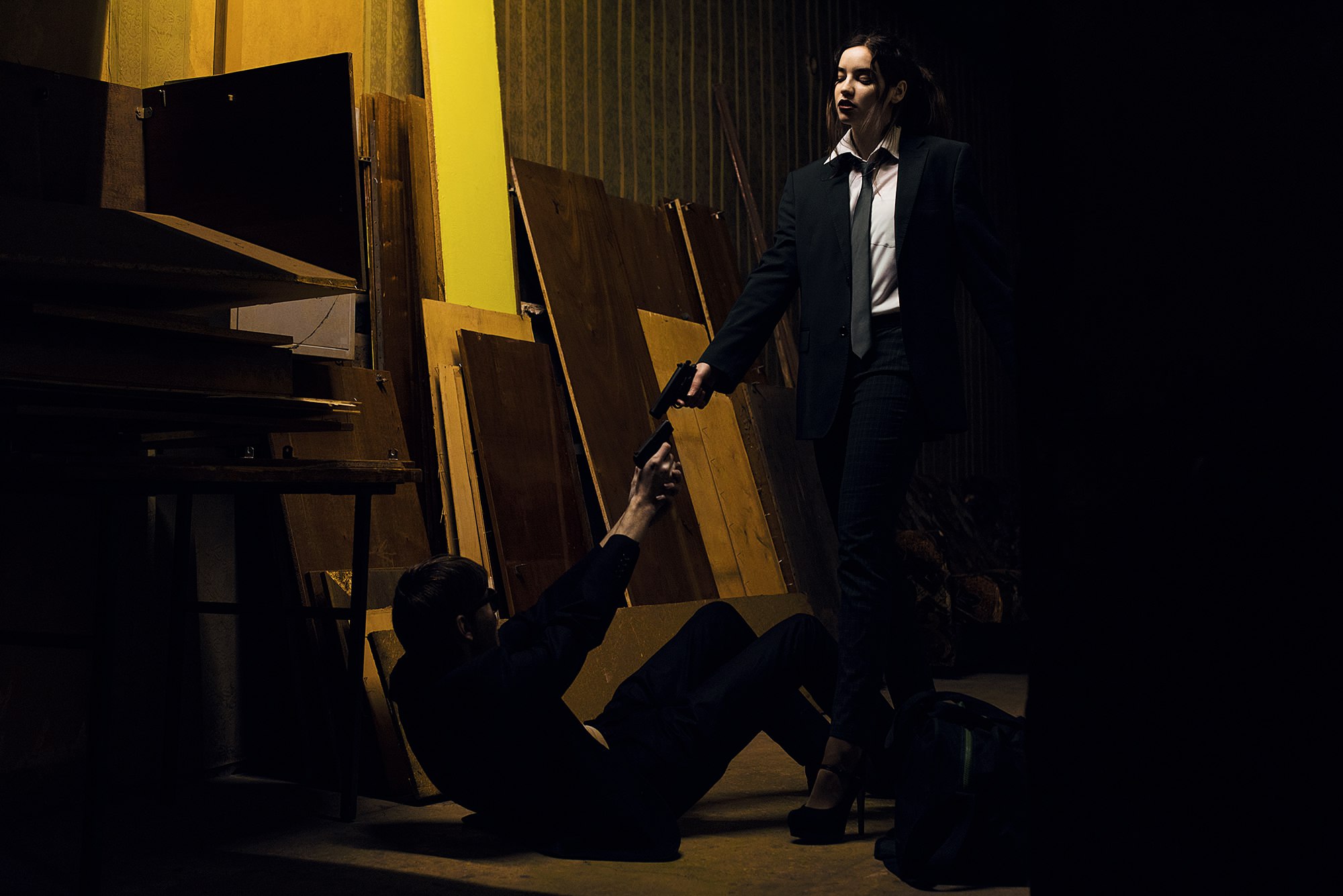 The whole idea was made by Rosa herself (and I myself did not want to go into this especially, because I did not represent it, and did not want to imagine what I could think of). The shooting took place in different places in a few days. It was both a studio and a cafe, and the room from which we were quickly kicked out by the evil aunt, although we did not interfere, and almost in the car (we had to lie in the trunk). The shooting took place in different places in a few days. It was a studio, a cafe, and a room from which the evil aunt quickly drove us out, even though we did not interfere, and almost in the car (I had to lie in the trunk). In general, this photo session I do not really like, except perhaps the post-frame shot taken in the studio. I even thought that they would exclude us ... but, surprisingly, we took 4th place! Well, I will not torment you and show you the whole series, according to the plot: