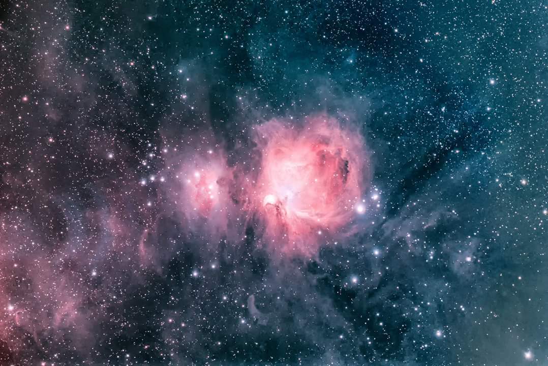 "The Great Orion Nebula" - couldnt resist another go on this target, this is was got me into astrophotography in the first place. Here you can see my latest and first ever attempt at it. Great to see the progression but its only took me five years!! I cant remember what I did for my first attempt or what I used, guessing I was just buzzing to be able to photograph it, prob sumat like a 30 second exposure. Yesterdays details, 2hour 20 total exposure, around 30x5 minutes plus darks flats and bias, modded canon 6d, idas v4 filter from ze back garden. Oh and a 20 second expo for the core. Processed in Deep Sky Stacker and Photoshop