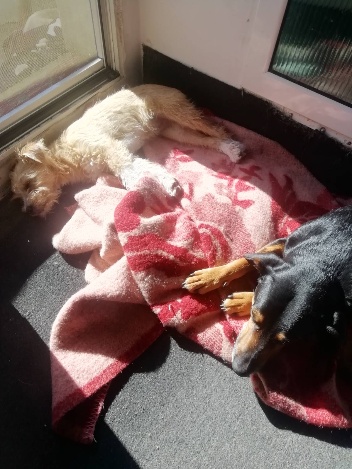 after a morning walk at the Sveta Gora hill with my dogs it's time for them to collect sun!