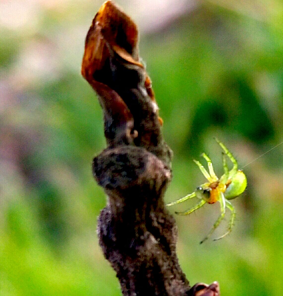 Green spider on fig tree / Grüne Spinne auf Feigenbaum