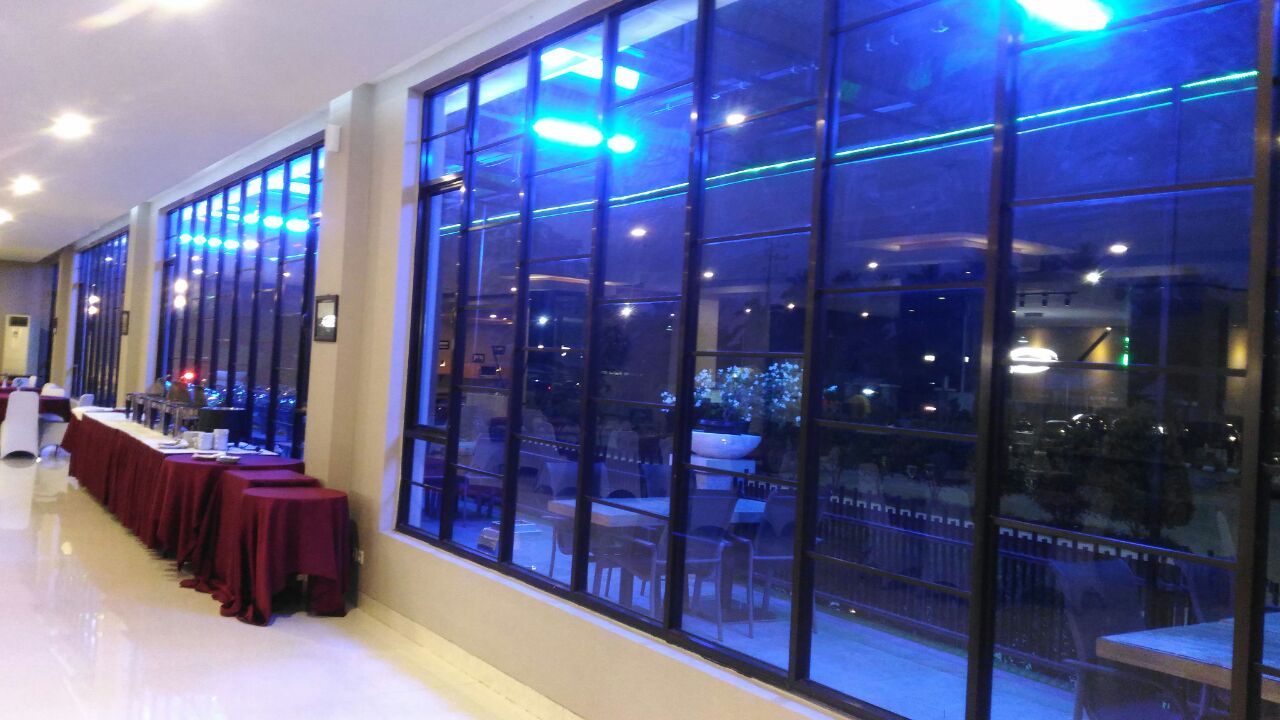 photography LIght Buildingjamadon (36)in #photography • 8 years ago Hiii Dear steemian morning..... Keindaah suatu bangunan dengan desain cahaya lampu LED Hannch 26 watt. Meberi suasana lebih hidup .. Coffee teras pun lebih elegan dengan pengambilan warna yang cerah memberikesan kesan keindahan. By Jamadon #indonesian #story #aceh #ksi