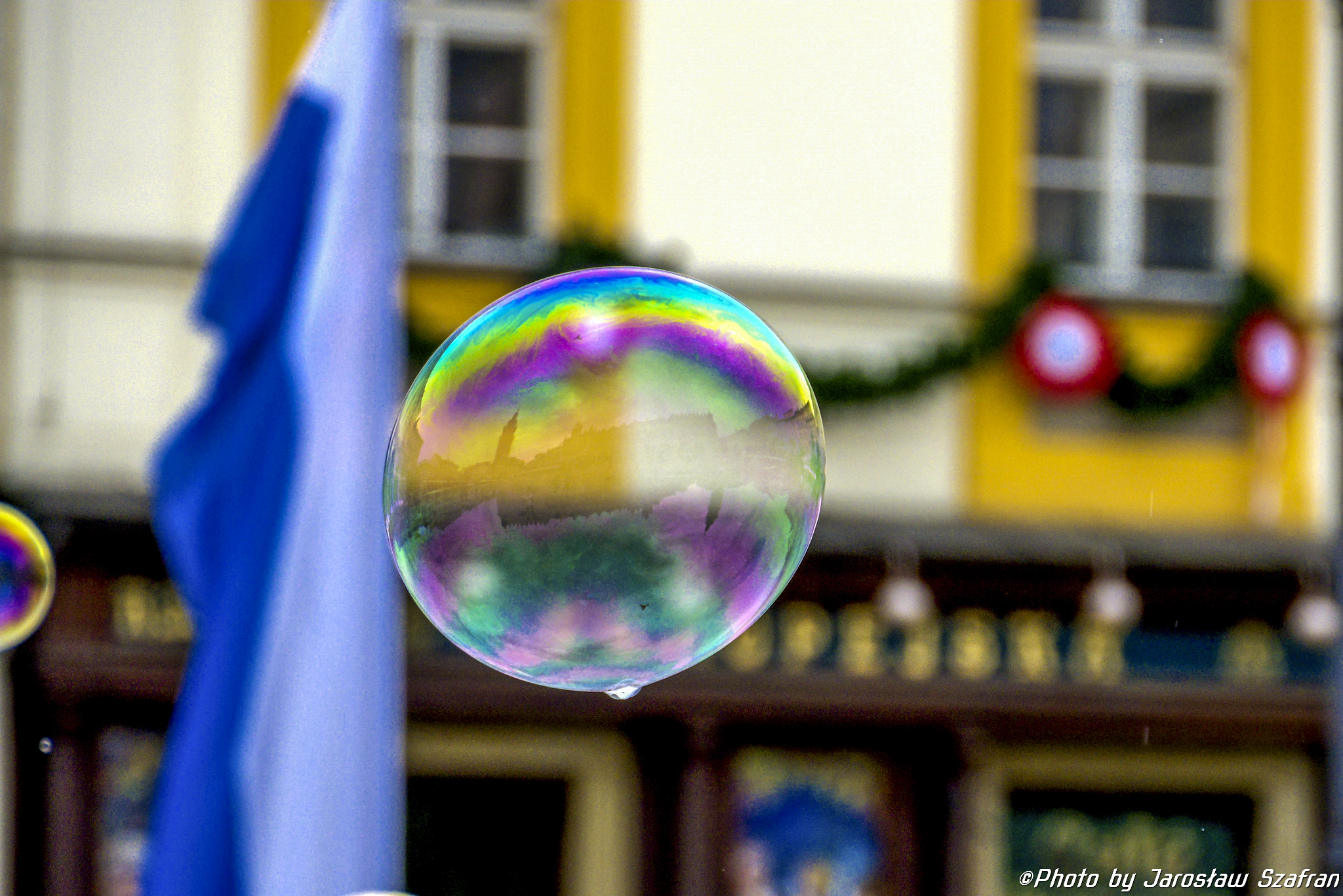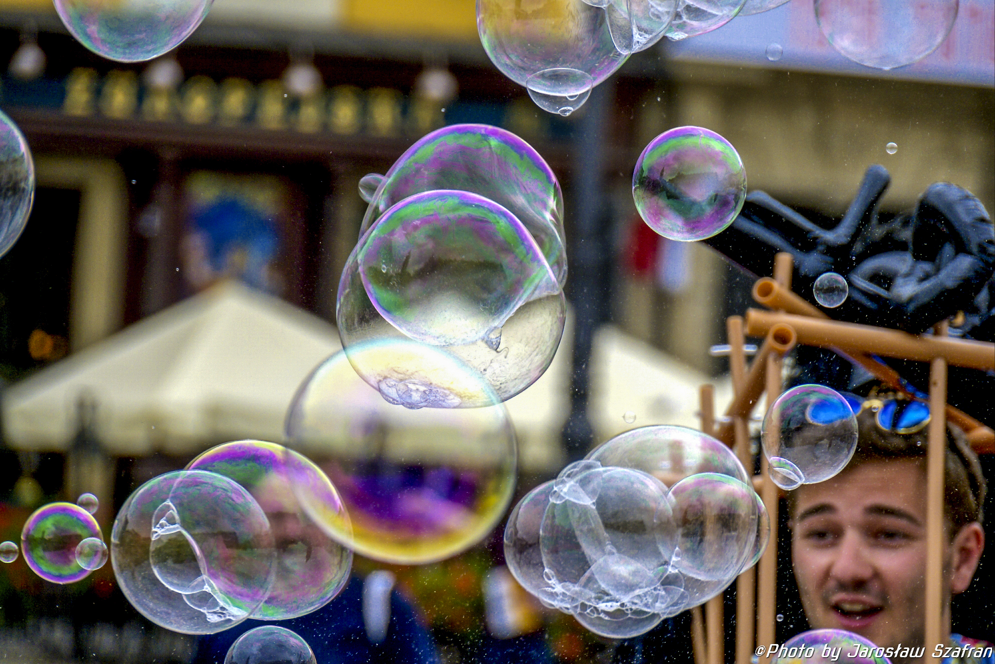 Colorful soap bubbles on the Main Square in Krakow.