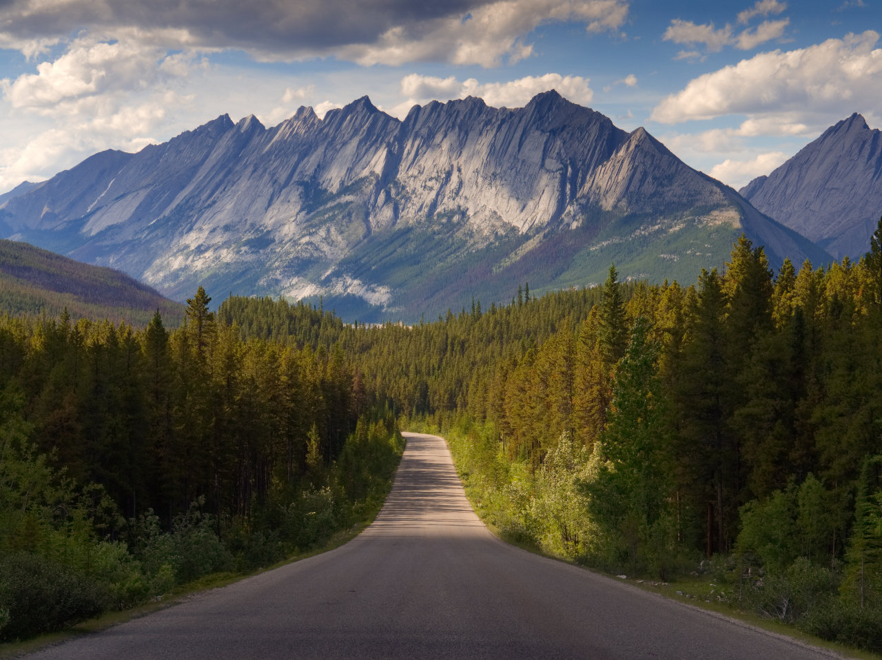 I love that road shot, looking down towards that sharp-edged ridge! That's off the Icefield Parkway, right?