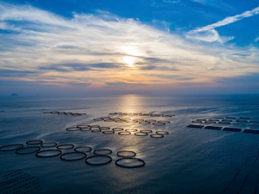 Sunset over Mazuao Bay at Nanjilie Island, Zhejiang province, July 20, 2017. [Photo/Xinhua]