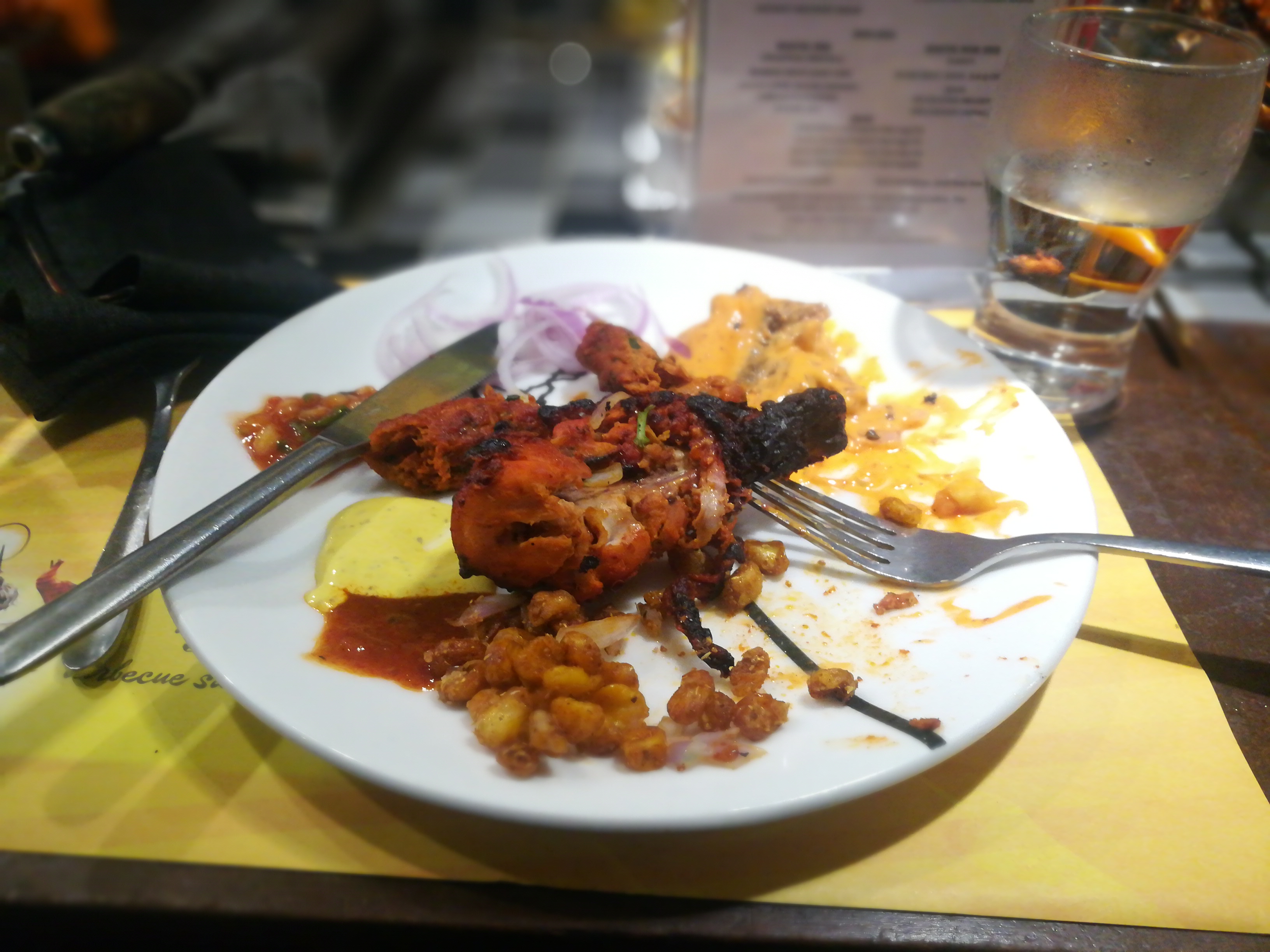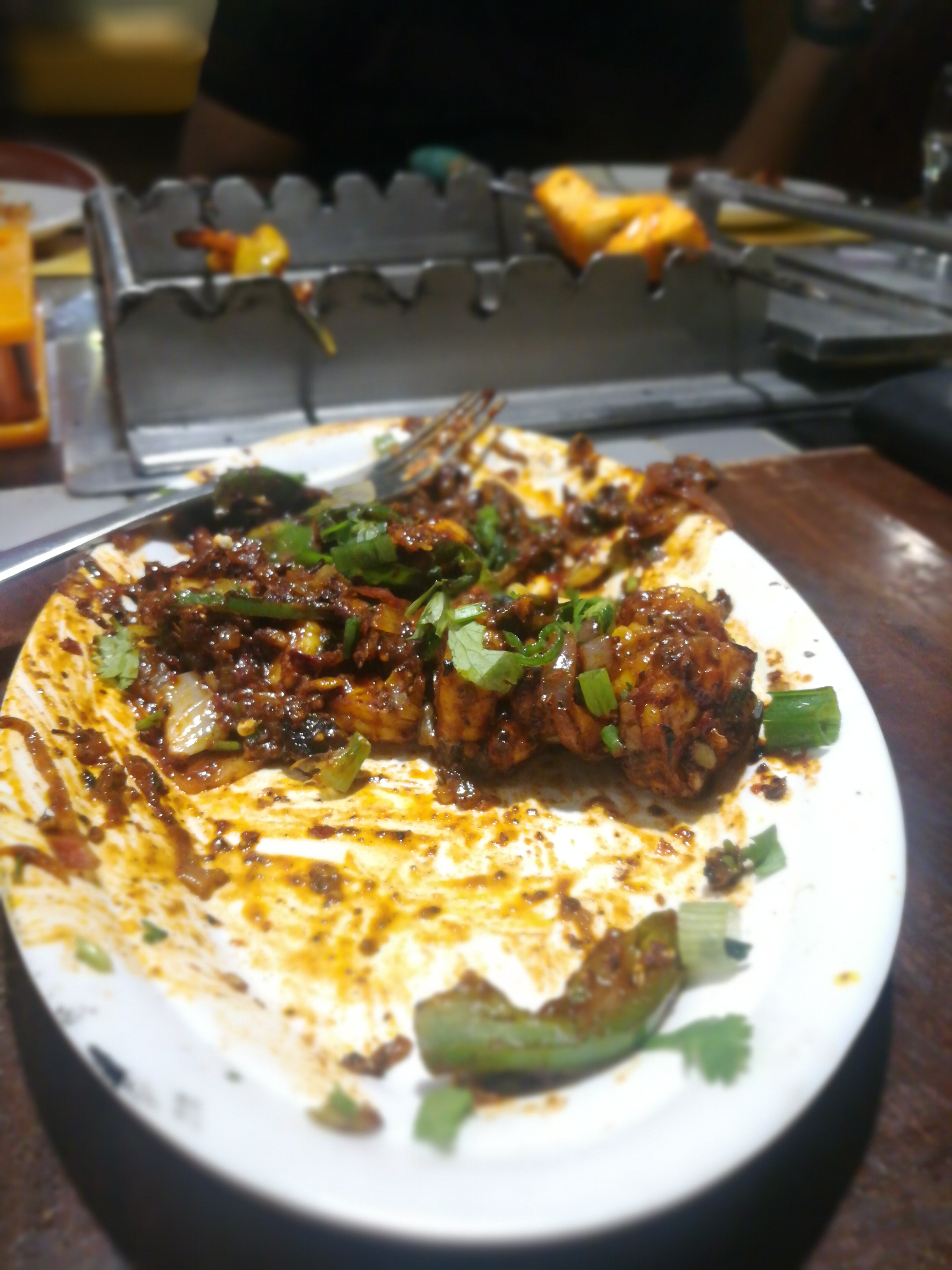 While I've been following a controlled diet for the most part in the last two years owing to my weight-loss and fitness goals, there are always cheat days that are necessary to go with our workout routine - to help us stay focused and on track with our balanced diet by allowing the occasional culinary indulgences. My cheat meals most often include munching on something sweet, like chocolates, desserts or some kind of Indian sweet of which there are plenty varieties. Also, it may happen that there are parties or celebrations where we go out for buffet lunches and I cannot resist myself from eating a little extra than I usually would. On one such recent occasion, I went out for a team lunch with some workmates, and the place was a famous restaurant called "Absolute Barbecue", and I decided to allow myself to eat more that what I'd routinely eat, and of course I knew that this meal was going to cost me lots of extra rounds on the treadmill.