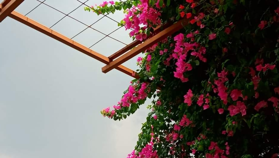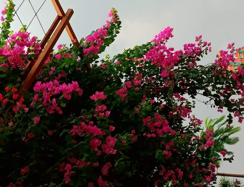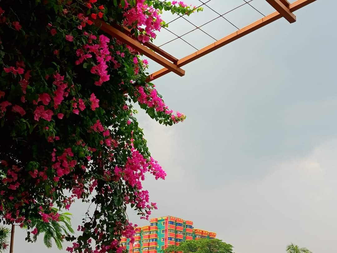 Bunga yang Anda lihat di foto adalah salah satu bunga paling populer dan menarik di Bangladesh. Saya sangat suka bunga ini dan sangat cocok untuk dekorasi rumah. Bunga ini cukup menambah keindahan gerbang depan rumah. Bougainvillea adalah genus tanaman merambat hias berduri, semak-semak, dan pohon-pohon milik keluarga jam empat, Nyctaginaceae. Ini berasal dari Amerika Selatan bagian timur, ditemukan dari Brasil, barat ke Peru, dan selatan ke selatan Argentina. Penulis yang berbeda menerima dari 4 hingga 22 spesies dalam genus