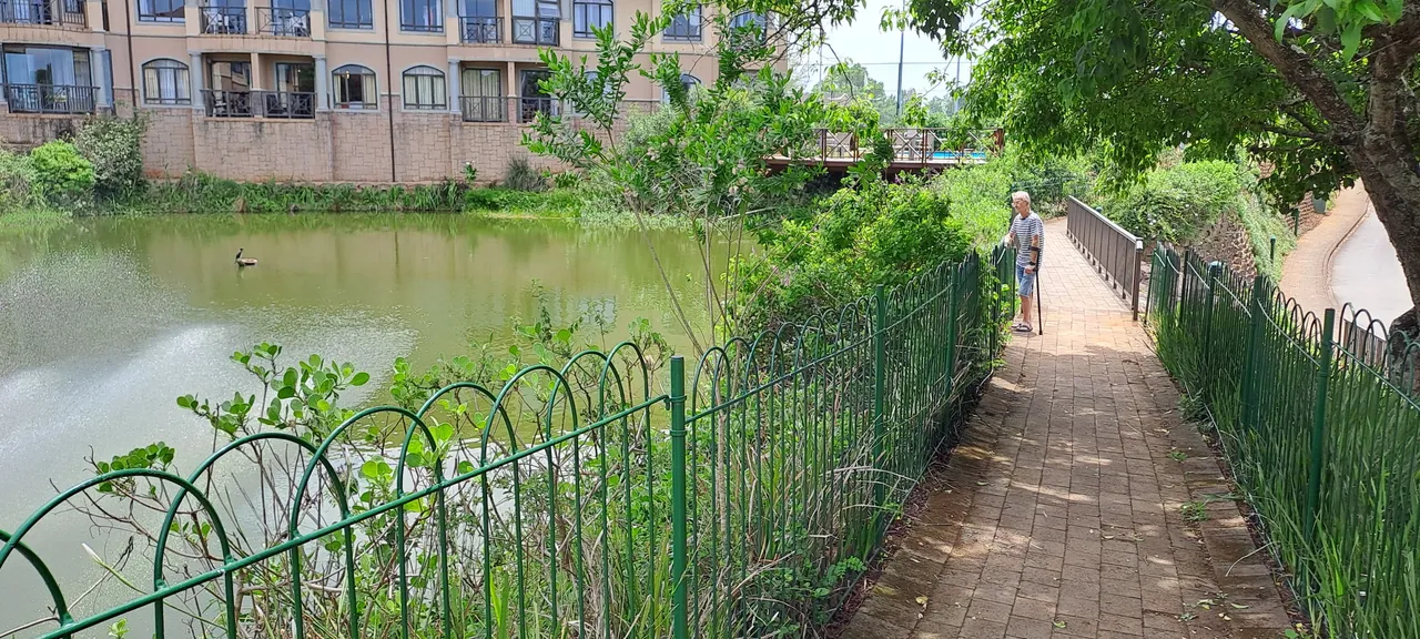 Our route took us from my apartment to the bowling green next to the estate clubhouse and back. My brother was using a crutch when we first started, but was brave enough to leave his crutches at home and walk unaided today. I'd been driving past this little bridge but had no idea where it was leading. There are a couple of gentle hills.