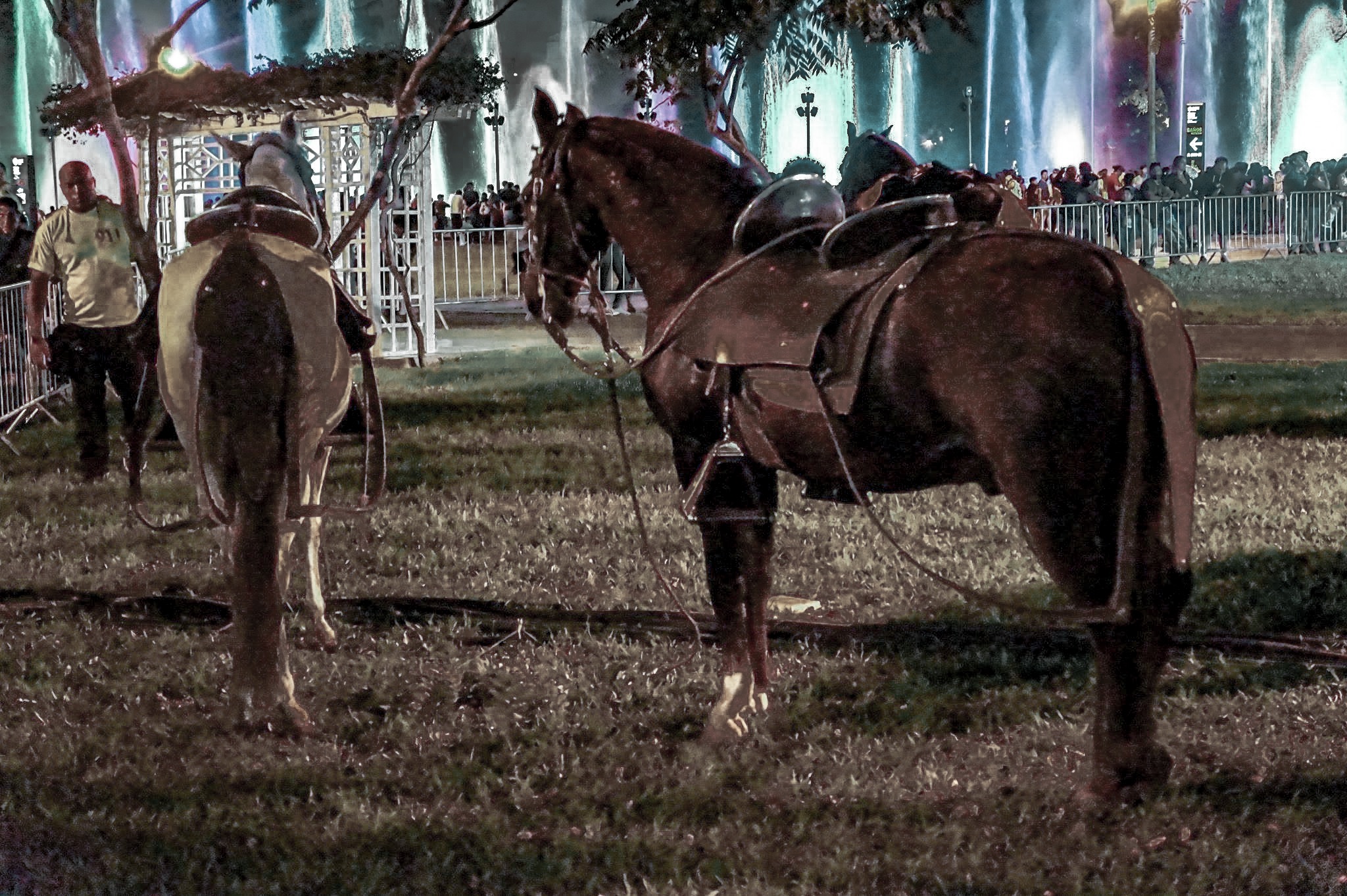 Es una lugar muy bonito, donde podrán encontrar muchas piletas con luces y música de fondo.. que realizan formas de colores, y también realizan shows.. como en este caso era el “baile del caballo de paso”, ya que era el aniversario de nuestra capital, lima.