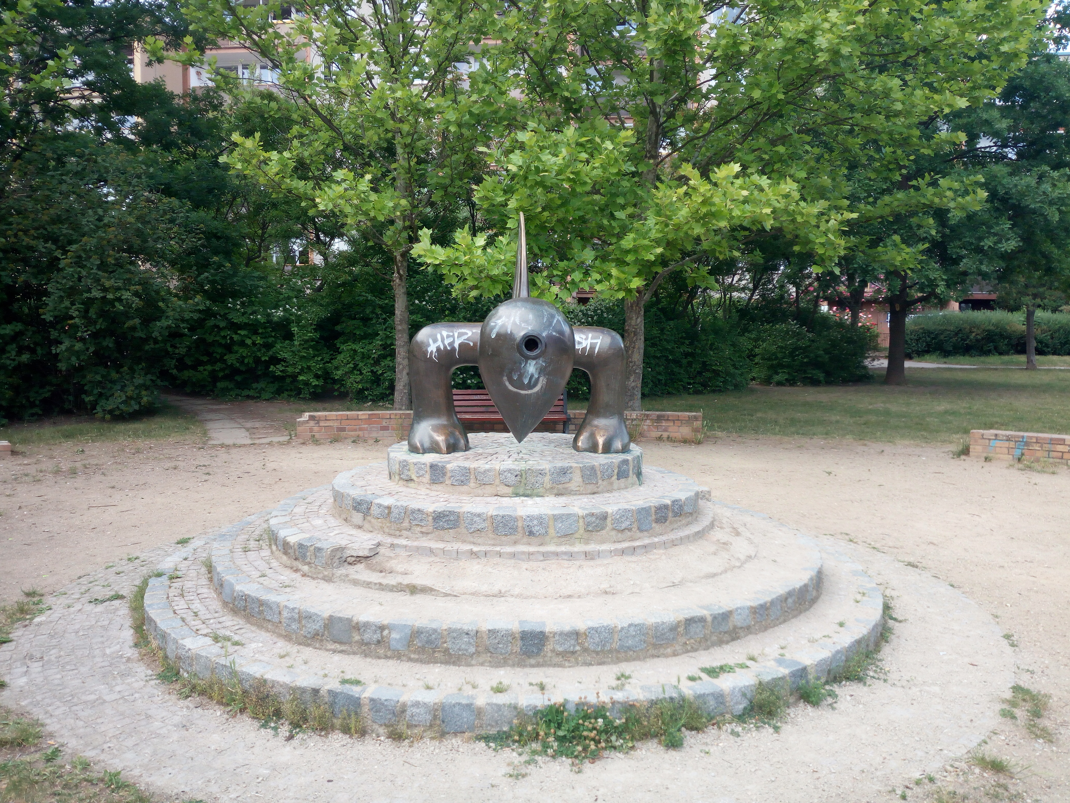 Prague is one of the cities in Europe with some of the most well kept secrets, not even the locals know all of them! So, I was walking around my office, along the old Czech communist panel buildings (panelaks in Czech) and I stumbled upon this strange statue, which seemed it was coming straight of a sci fi movie. What do you think about it?
